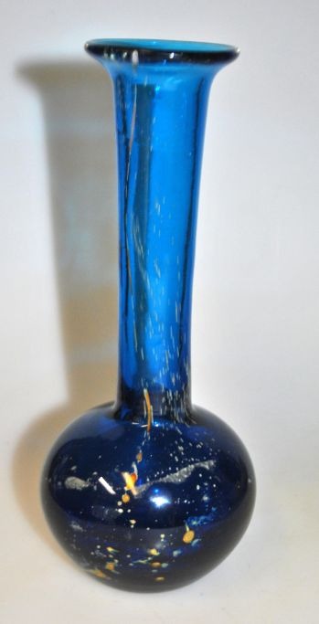 Mdina vase, 20. årh. Malta. Blåt glas med indlægninger. Signeret. H.: 17,5 cm.