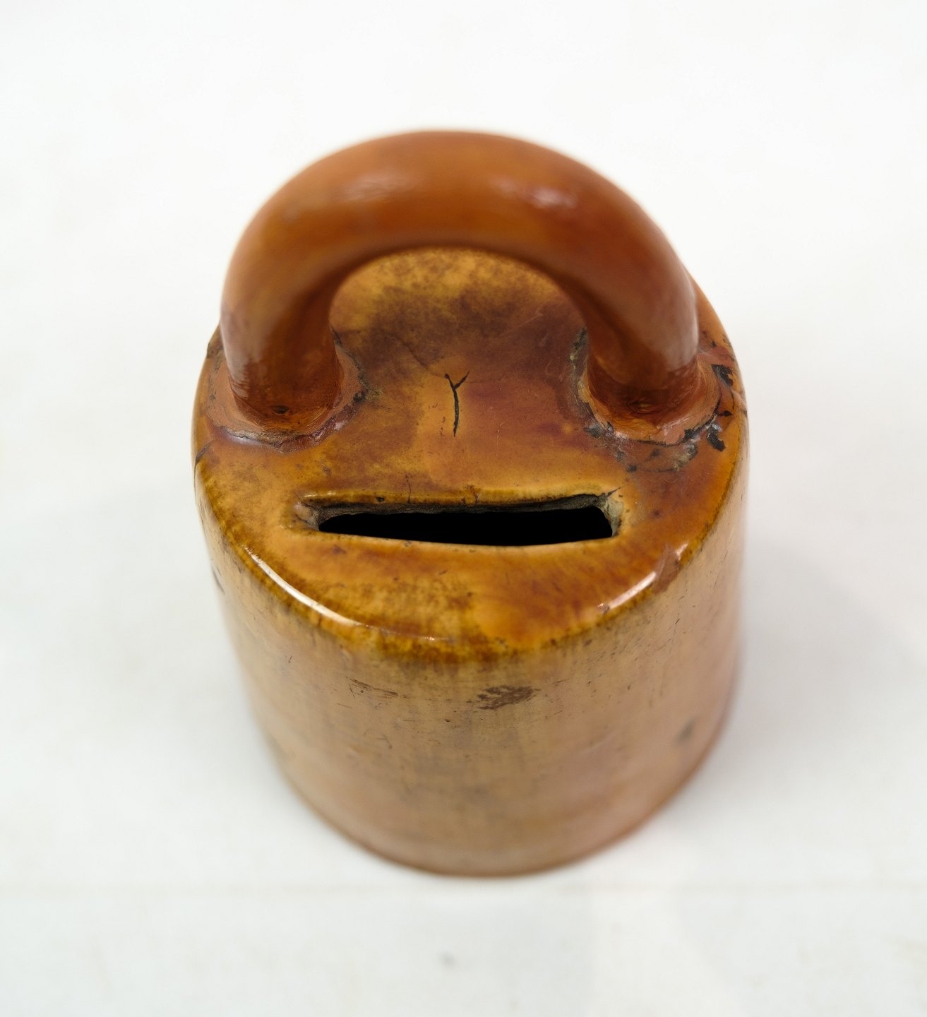 Sparebøsse, dansk design, keramik, gul glasur, 1950'erne.