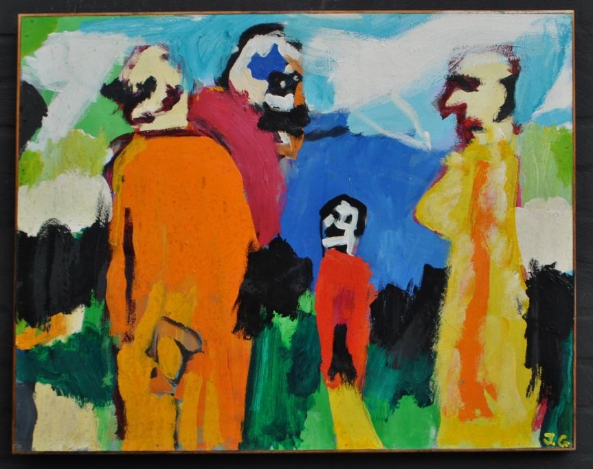 Gislason, Jon (1955 - ) Denmark: Jesus Christensen and family. Acrylic on board. Signed. 61 x 78 cm.