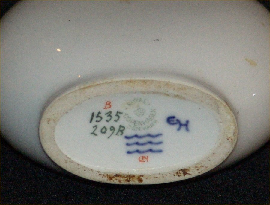 1535-209 b Kgl. Humlebi og blomst Signeret EH 16 x 14 cm Else Hasselriis fra Royal Copenhagen I hel stand 2. sort