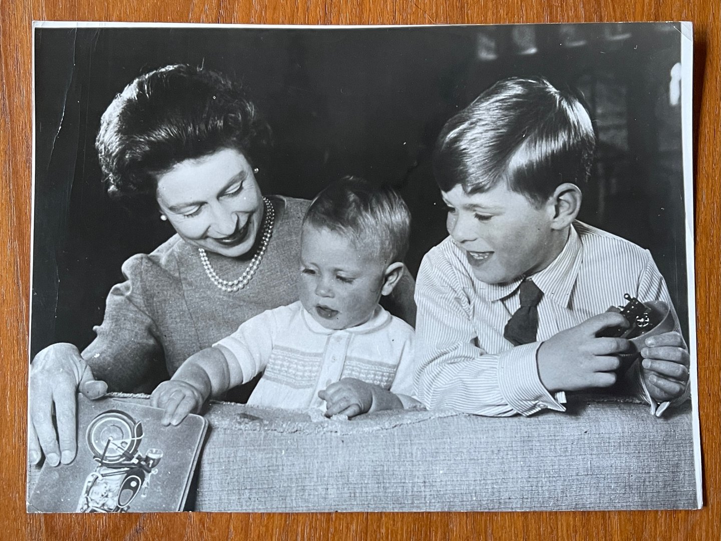 Fotograf Lisa Sheridan - født 1894, død 1966 (Studio Lisa): Sort/hvidt foto af Dronning Elizabeth II af England sammen med sønnerne prins Andrew og prins Edward i 1965.