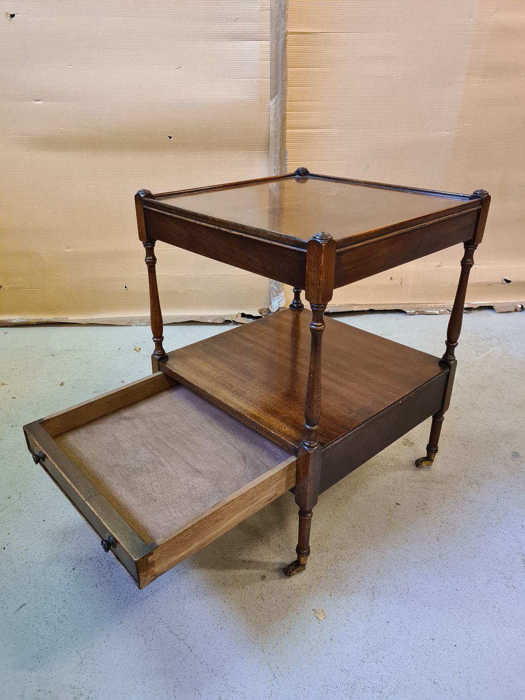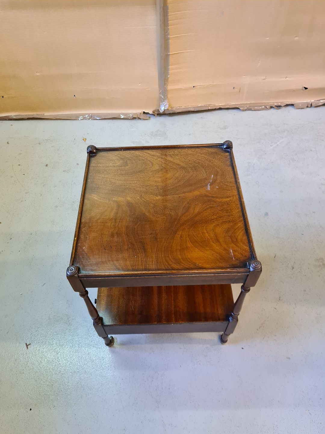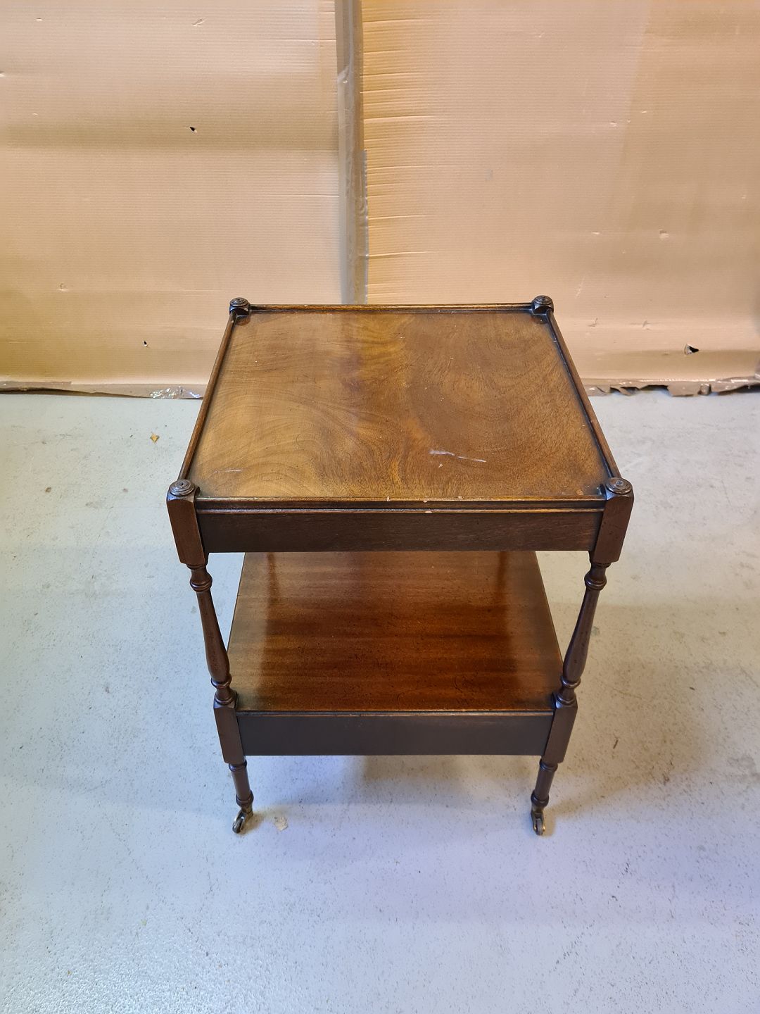 Lampebord i fineret mahogni, fra 1980erne.