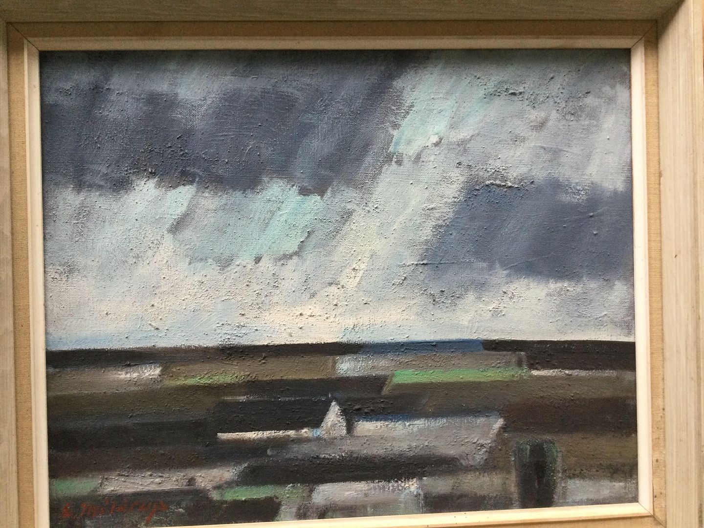 Maleri af Egon Møldrup - Kubistisk landskab.