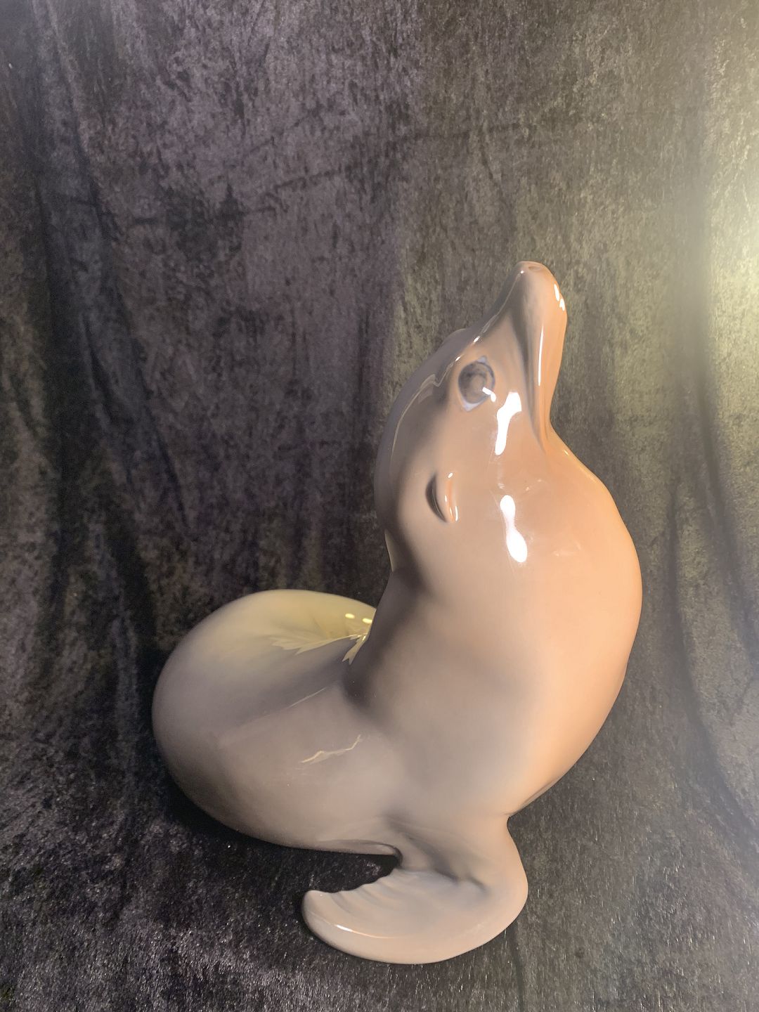 Large porcelain figure. sea lion RC no. 265 by A Nielsen for Royal Copenhagen. perfect condition. Height: 28 cm. Length: 24 cm. Width: 19 cm. contact for price