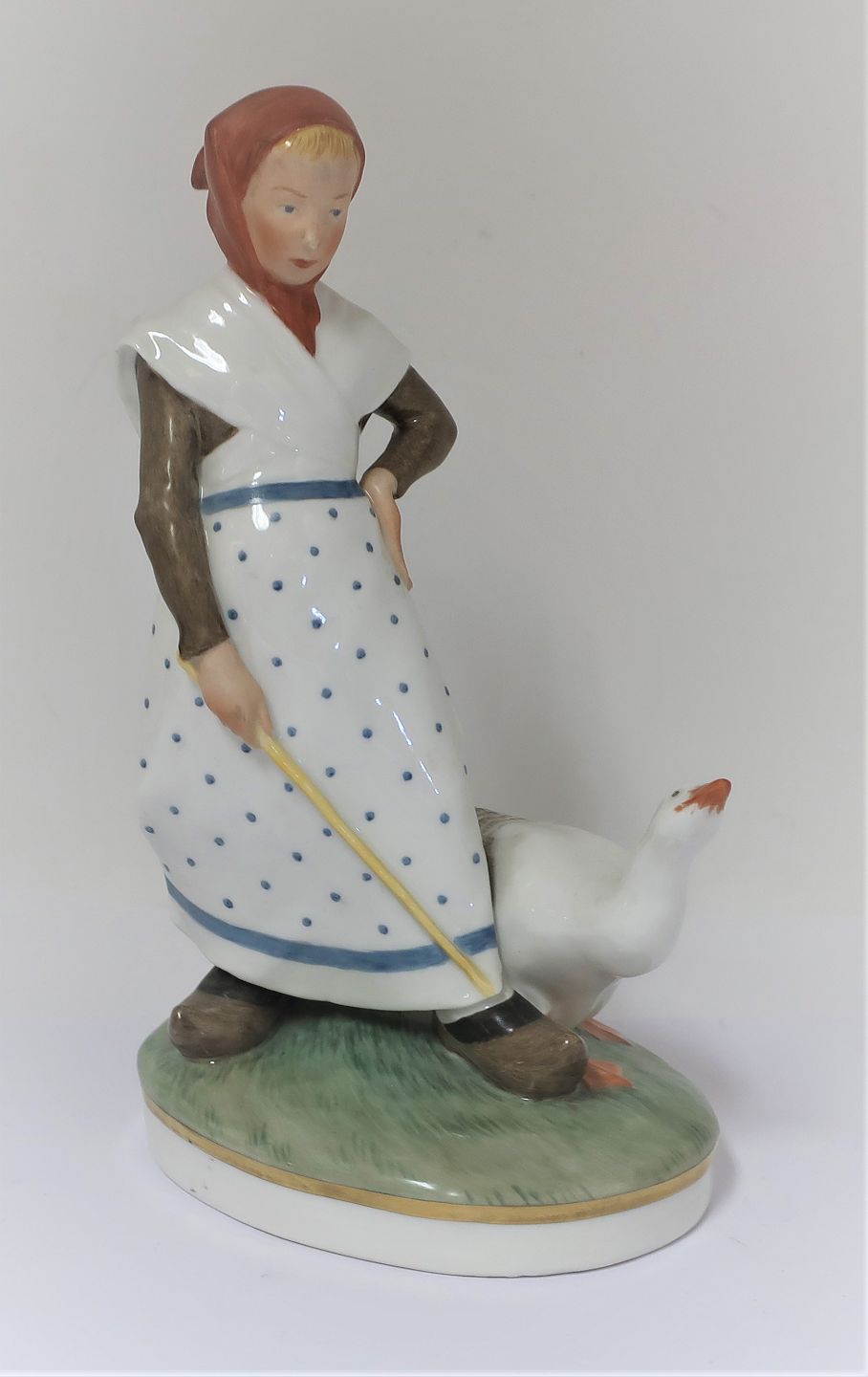 Royal Copenhagen. Porcelain figure. Goose girl in colors. Model 528. Height 18.5 cm. (1 quality)
