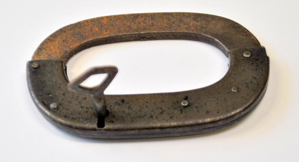 Hængelås, 19. årh. Af mærket Maximus.