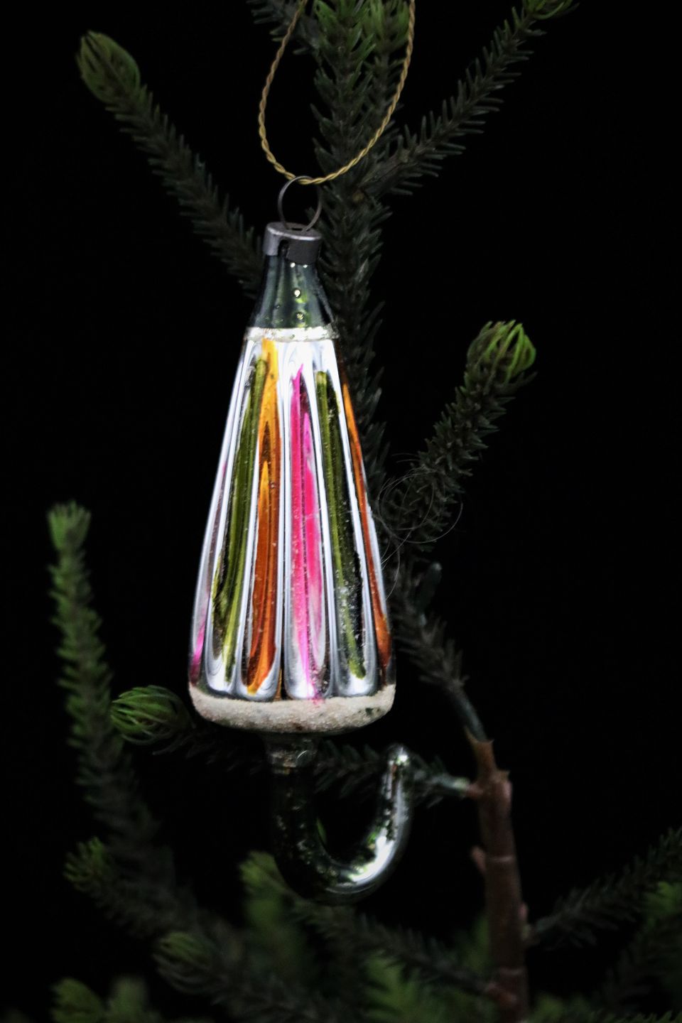 Gammel glas juleornament / juletræspynt fra omkring 1930-50. H:11cm.