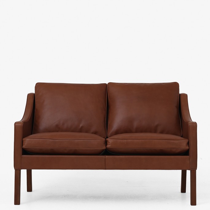 BM 2208 - Nybetrukket 2 pers. sofa i brunt 'Old America' anilinlæder. KLASSIK tilbyder sofaen i tekstil eller læder efter eget valg. Kontakt os venligst for mere information.