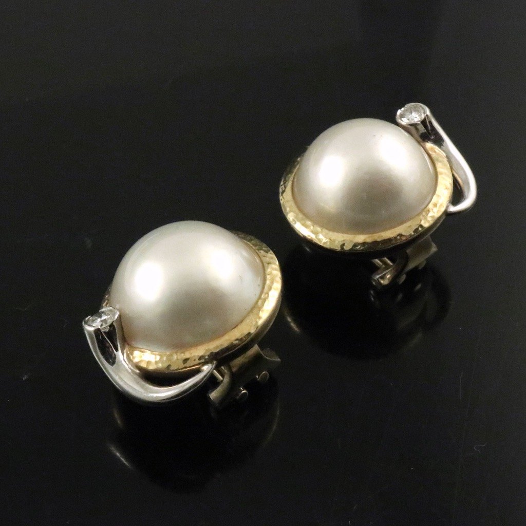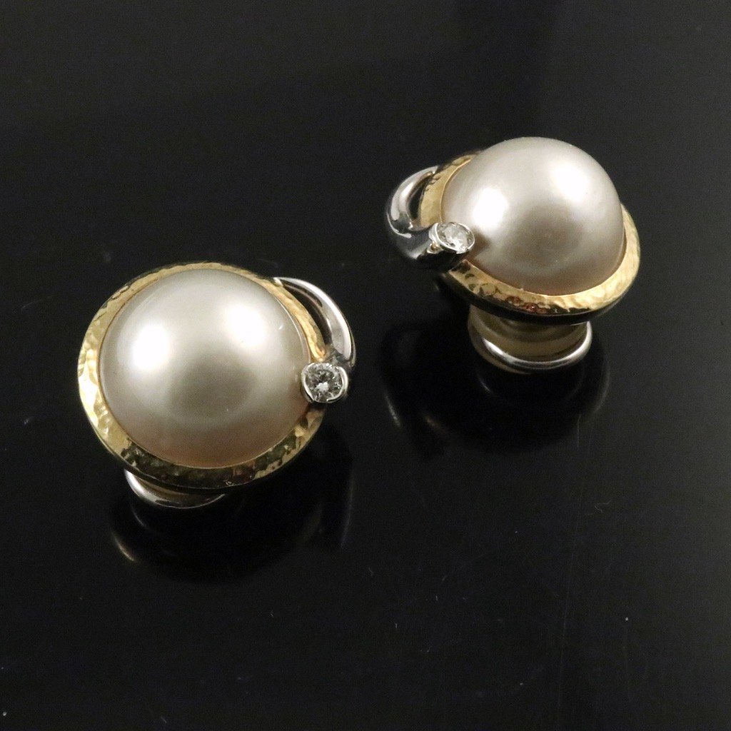Øreklips i 14k guld og hvidguld med perle og brillant.