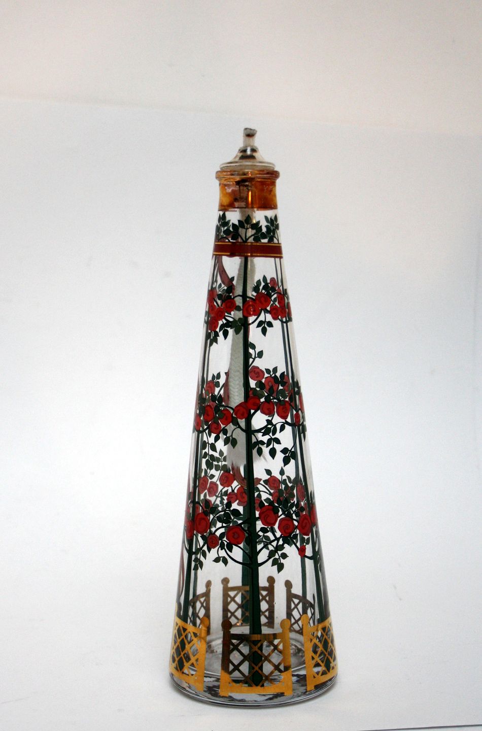 Holmegaard, Olielampe 1999 med kalender. Højde 26 cm. Væge intakt. Let guldafskalning for oven. Pris: 175 kr.