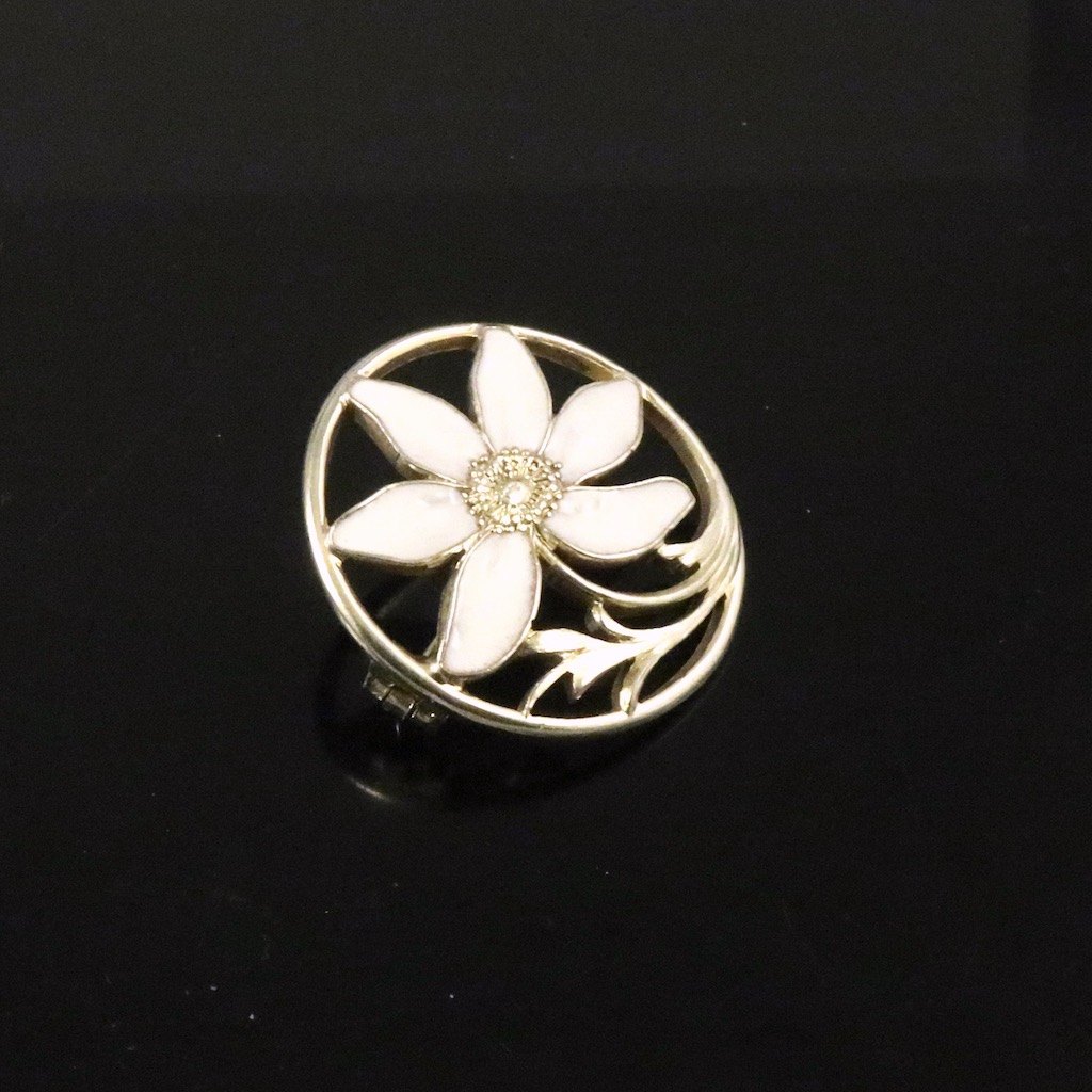 A. Dragsted. Broche i forgyldt sølv med emalje.