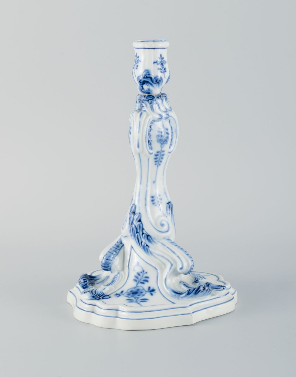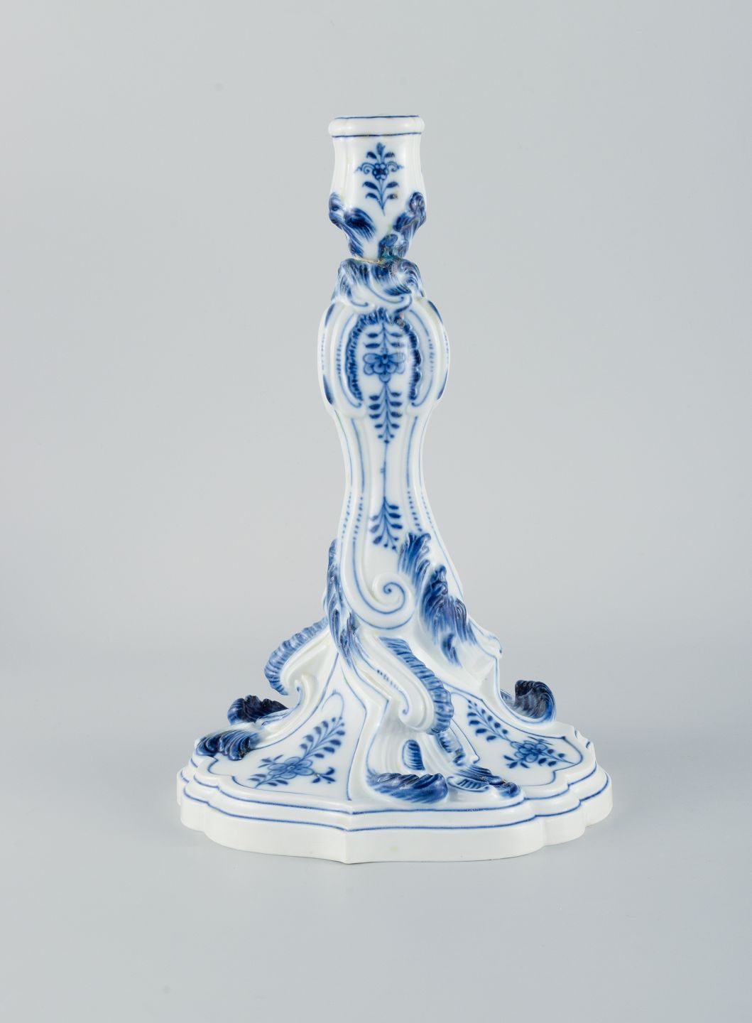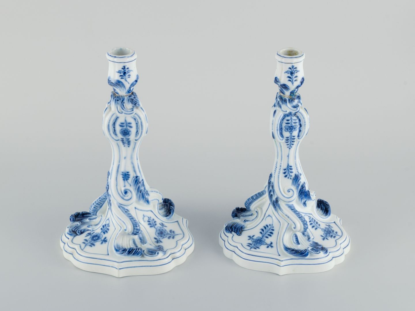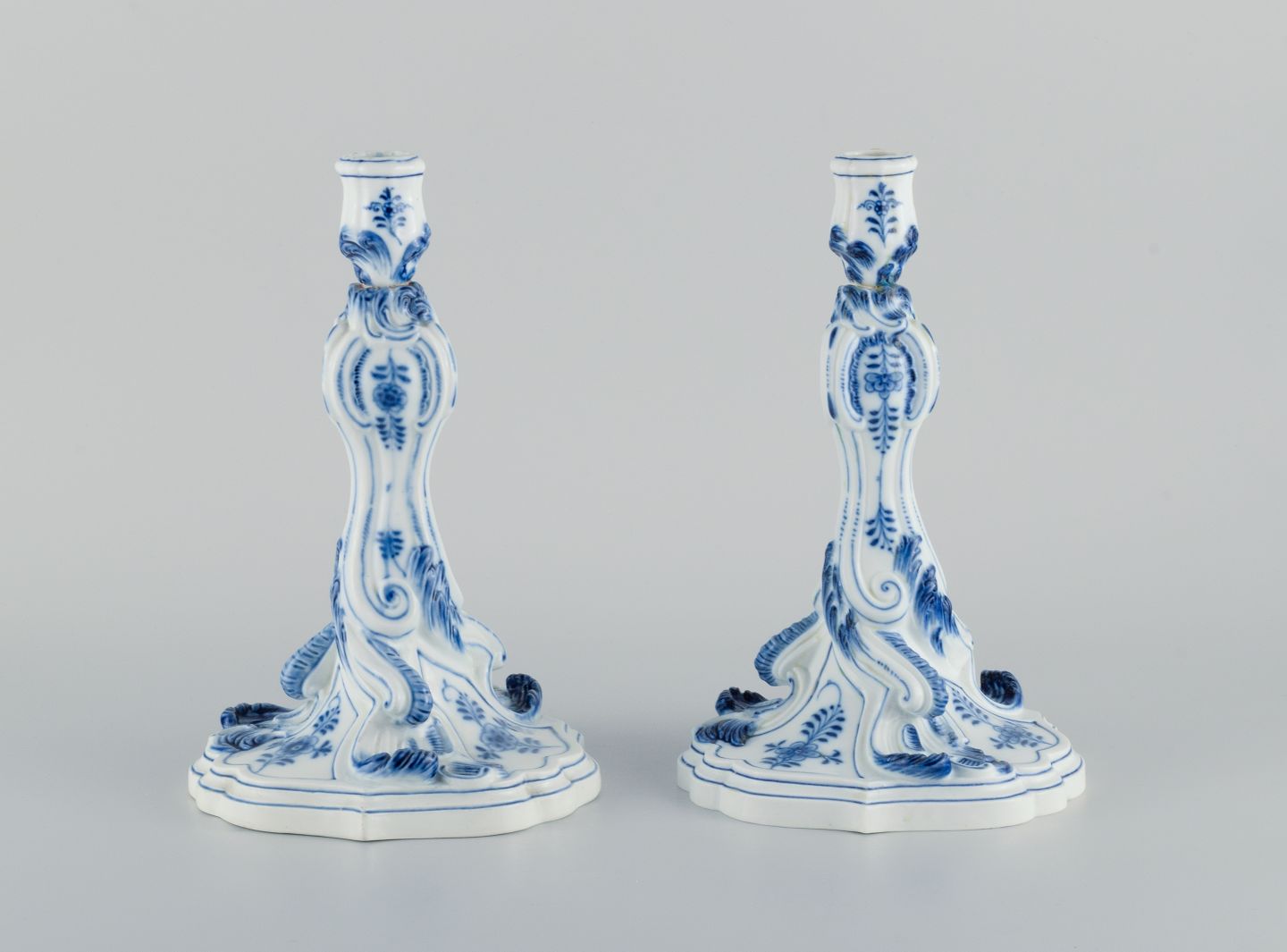 Meissen, Tyskland. Et par store antikke løgmønstret lysestager.