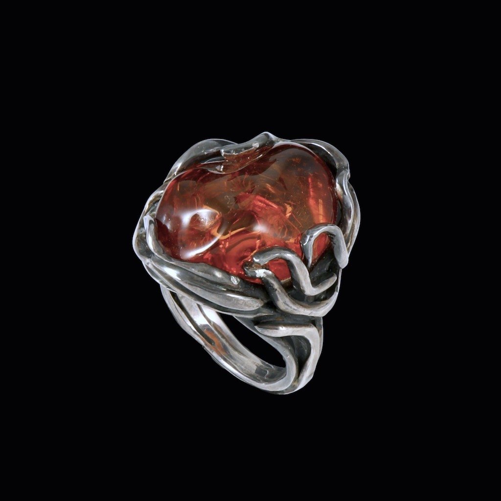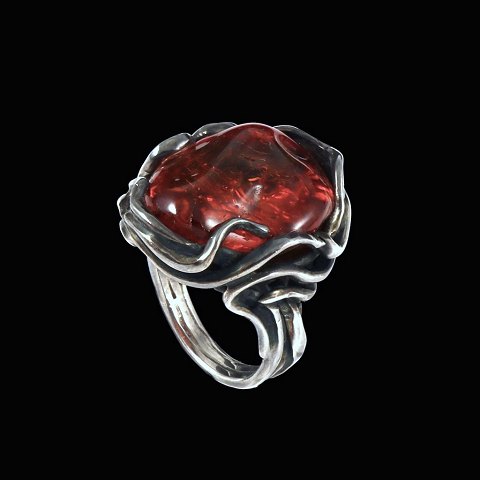 Vilhelm Holmstrup. Ring i sterling sølv med rav.
