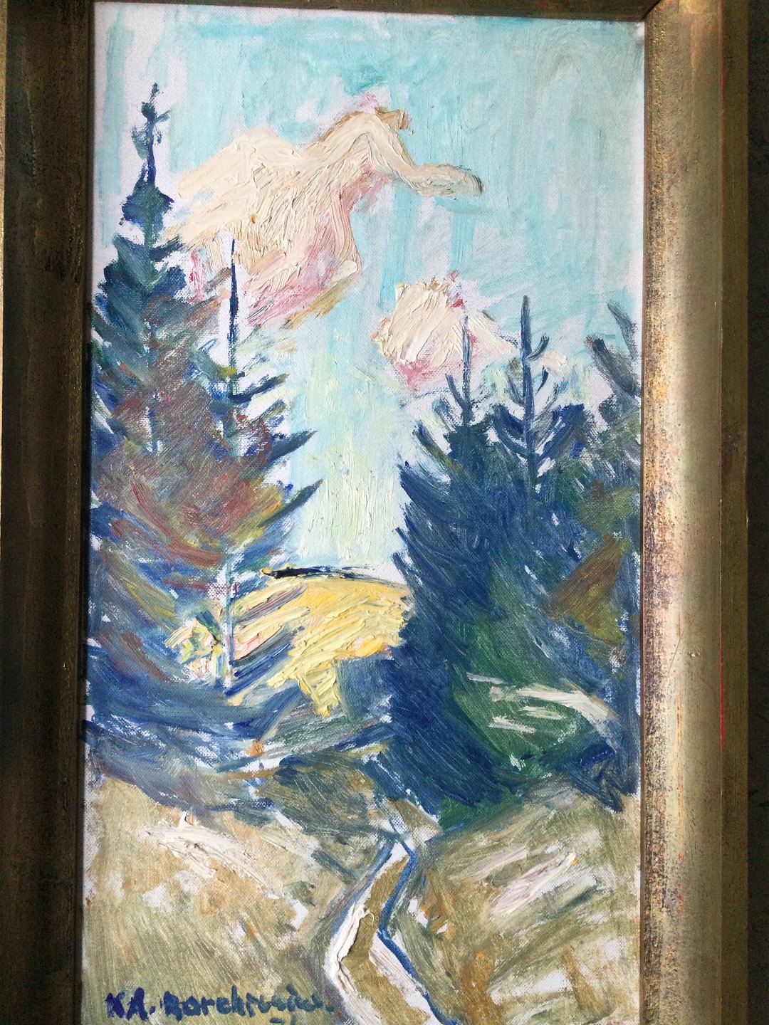 Maleri K.A. Borchsenius - Skovparti med vej 1971.