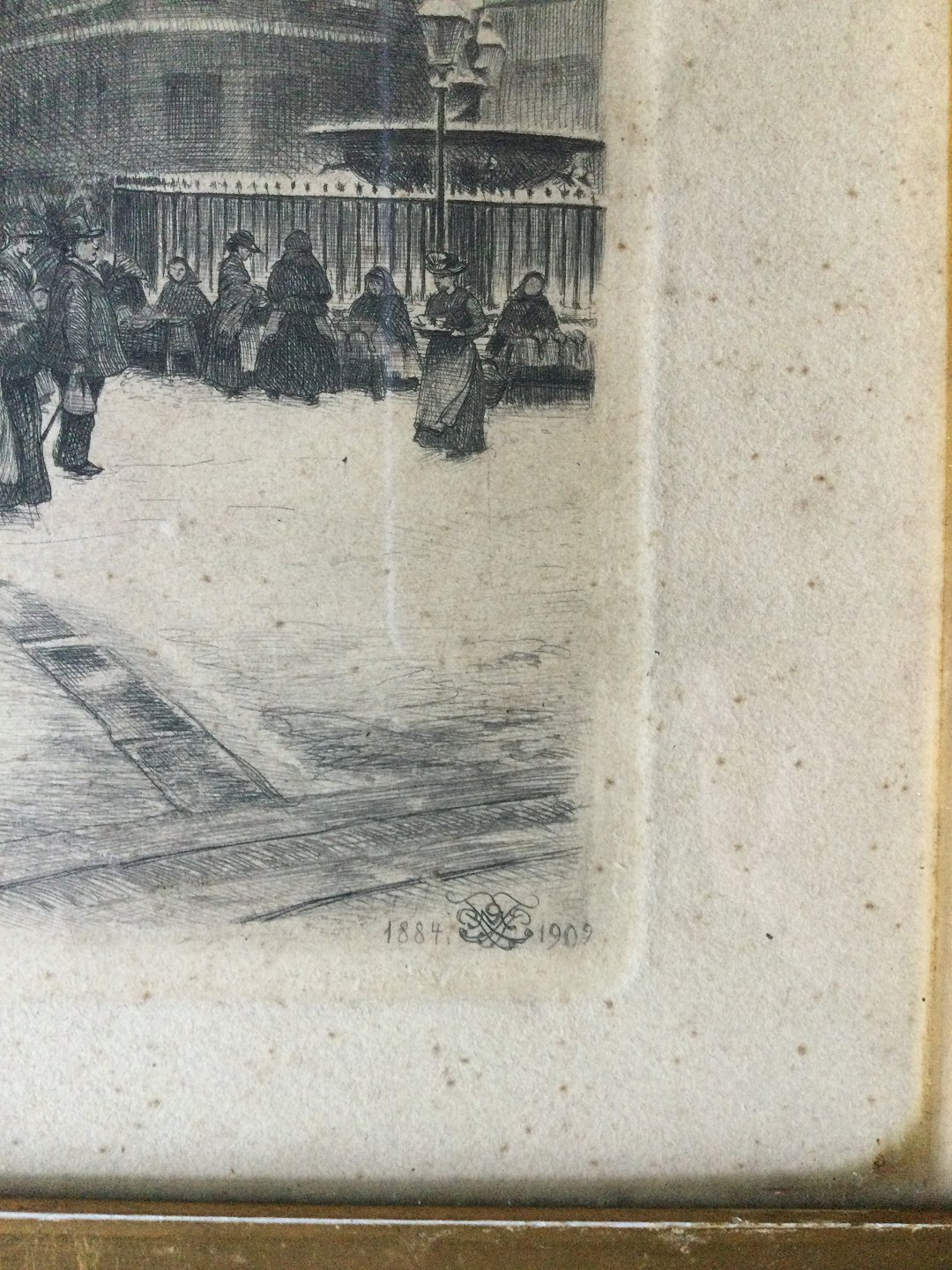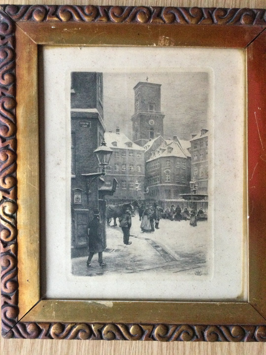 Radering af Peter Tom-Petersen - Gammel Torv i København, vinter 1902.