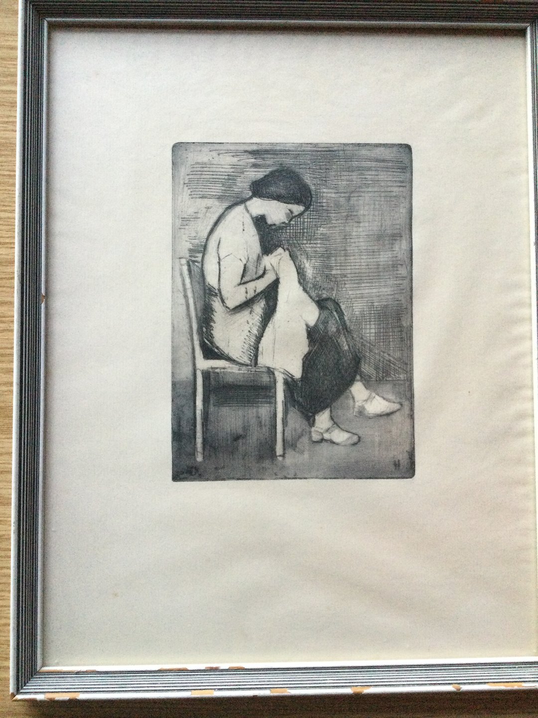 Radering af Herman Stilling - Ung kvinde med håndarbejde 1956.