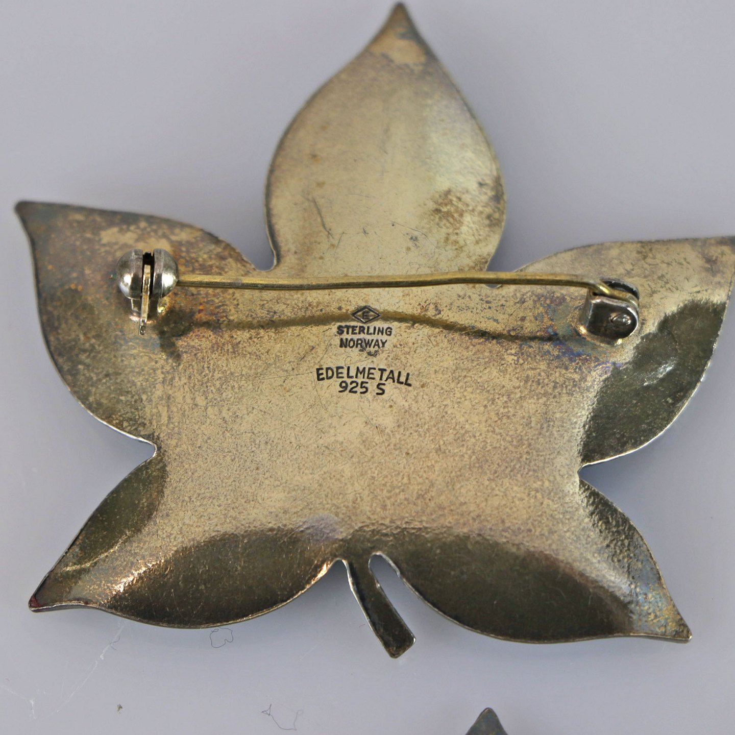 Sættet består af bladformet broche og et sæt bladformet øreklips.
