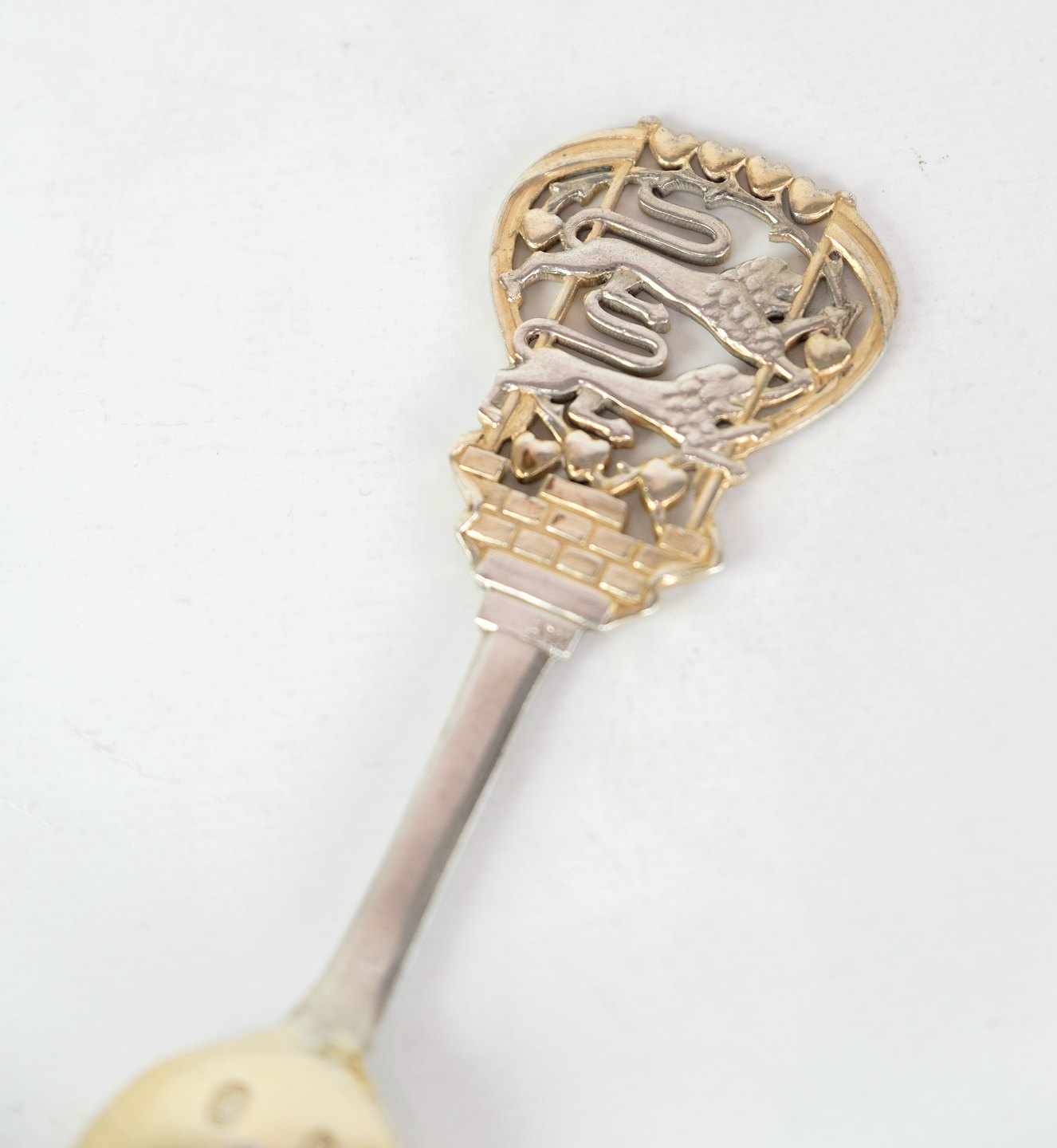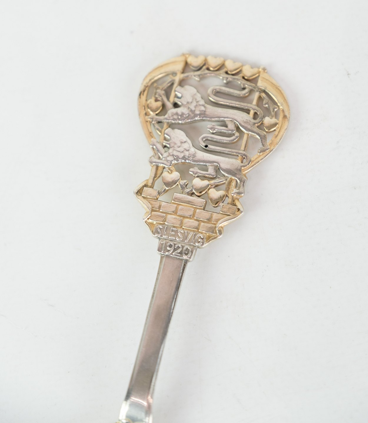 Anton Michelsen jubilee spoon from 1920 on the occasion of Reunification in Schleswig, 15 Jun 1920, Designed by Rigmor Agnes Slott-møller, partly made of gilded sterling silver.