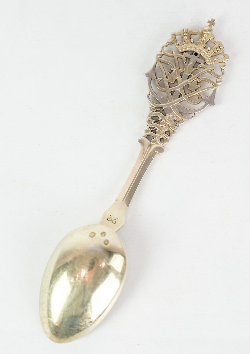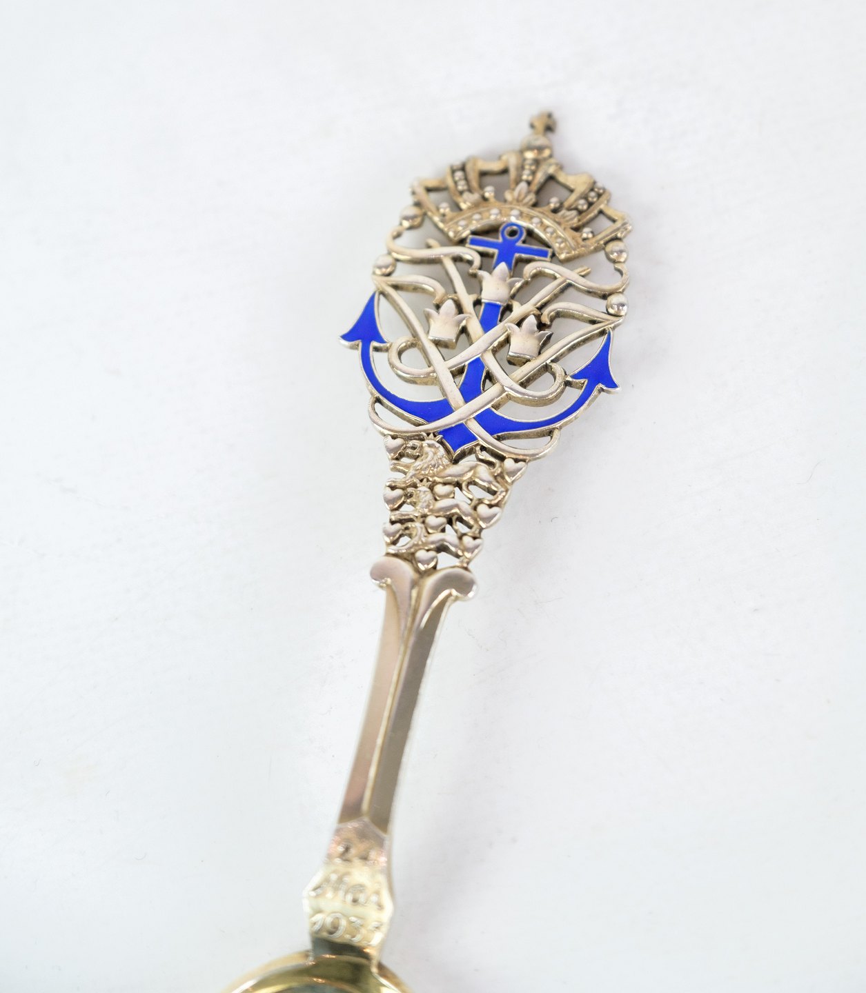 Jubilæumsske fra A. Michelsen i sølv forgyldt i anledning af Kronprins Frederik og kronprinsesse Ingrids bryllup d. 24 Maj 1935.