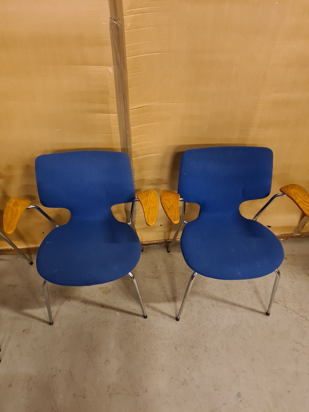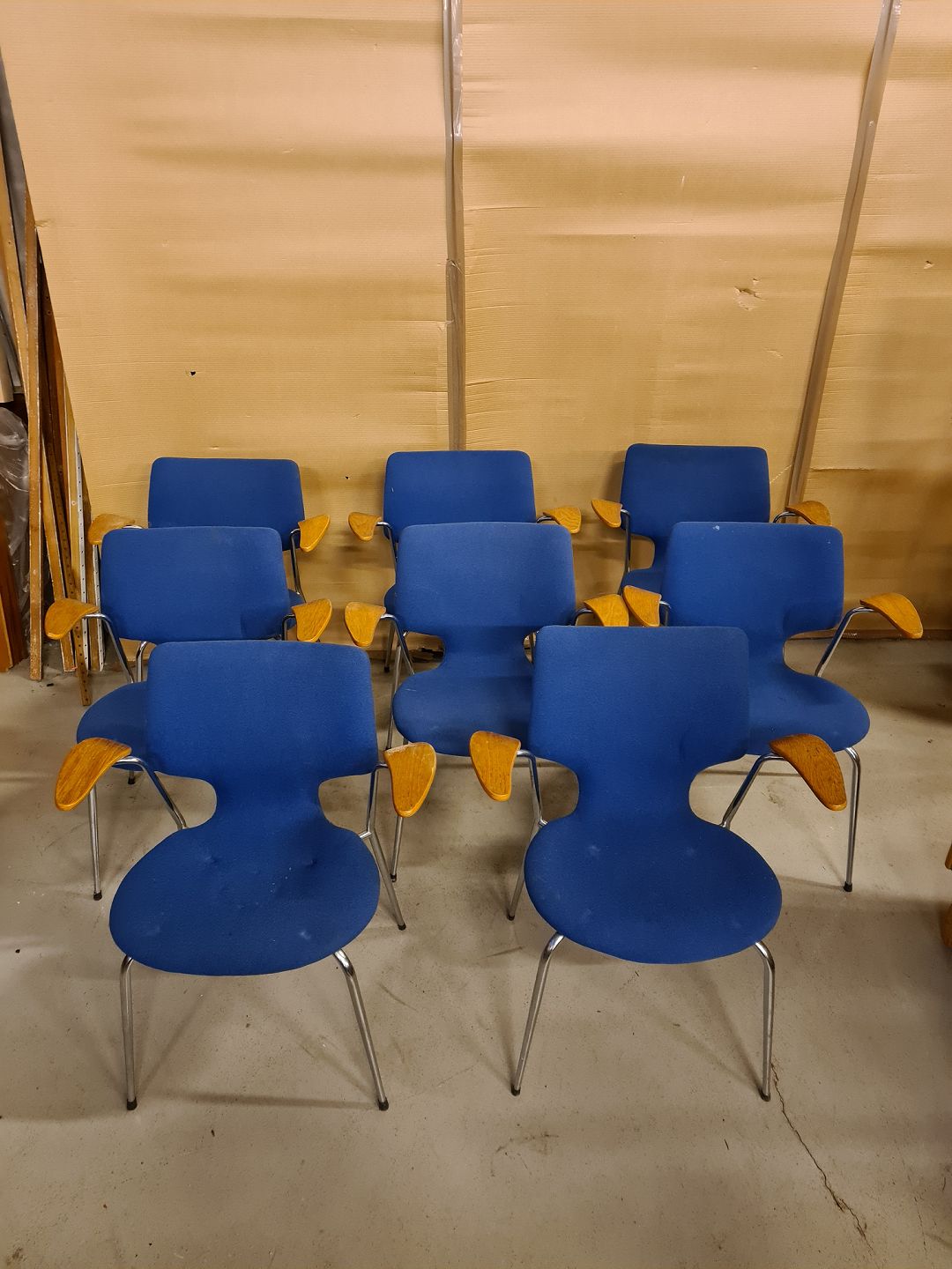 8 Armstole i egetræ og metal, fra 1970erne.