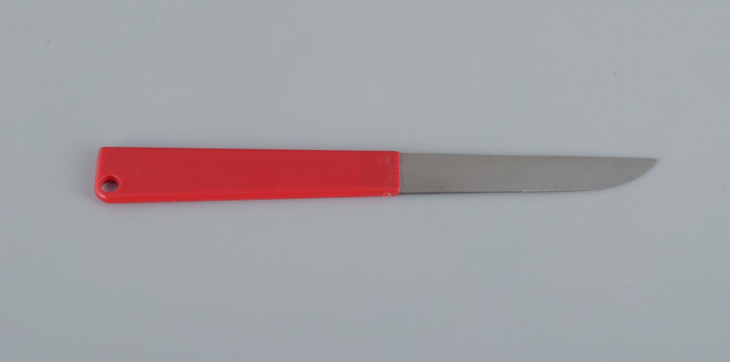 Gense, Sverige. "Holiday" middagsbestik til fire personer i rustfrit stål og rød melaminplast.