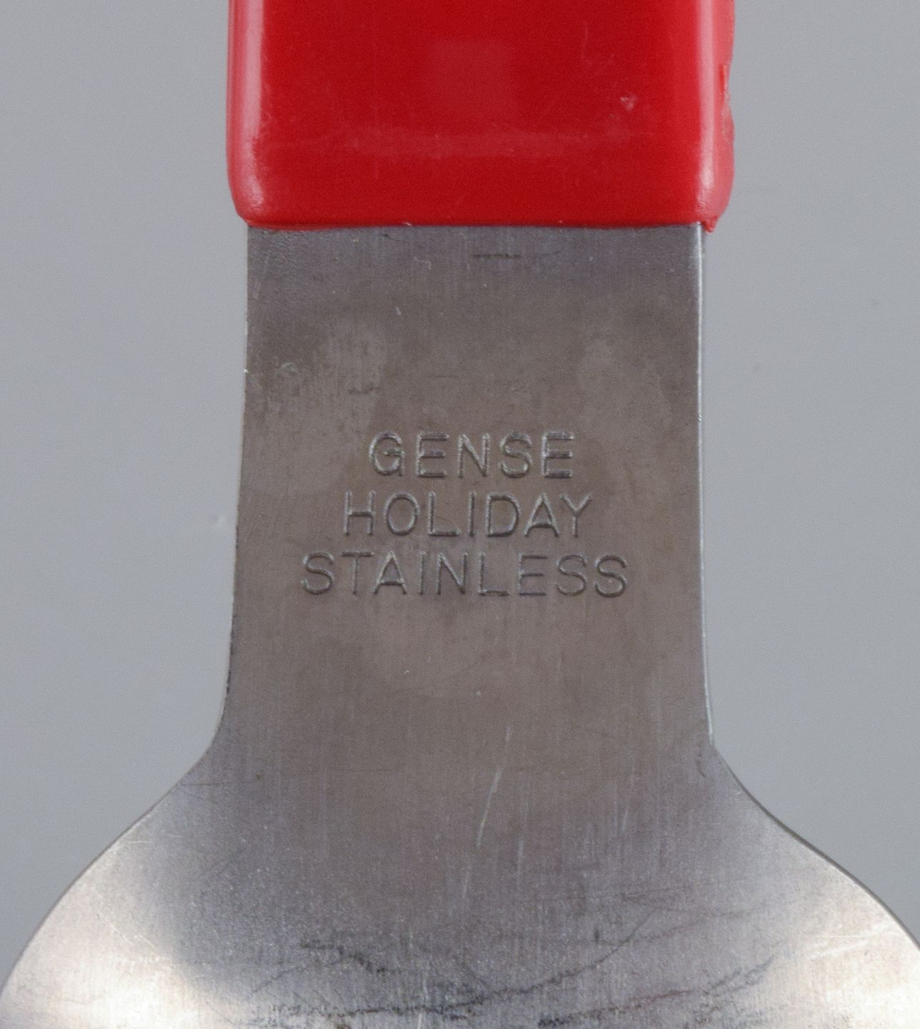Gense, Sverige. "Holiday" modernistisk middagsbestik til fire personer i rustfrit stål og rød melaminplast. 12 dele.