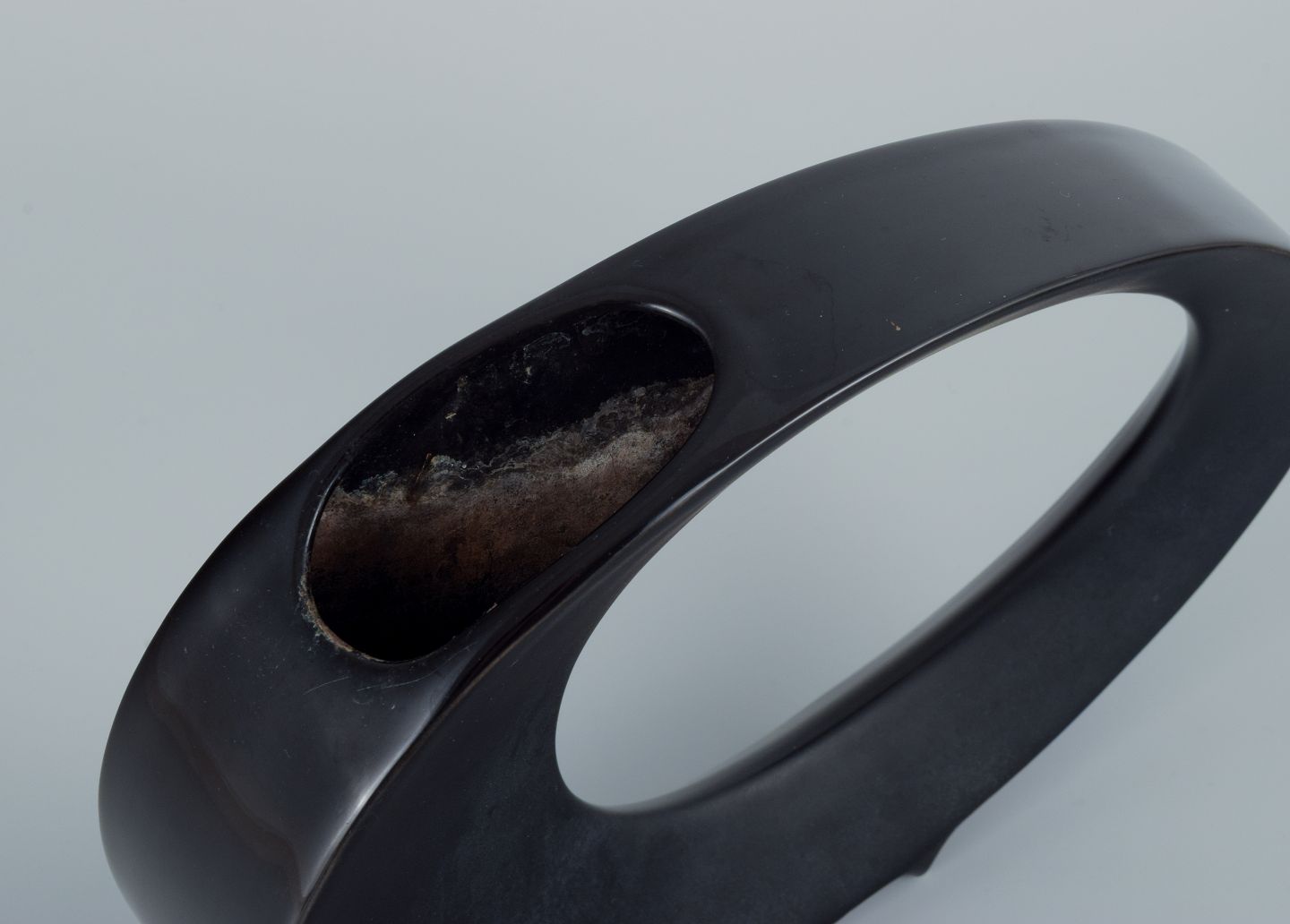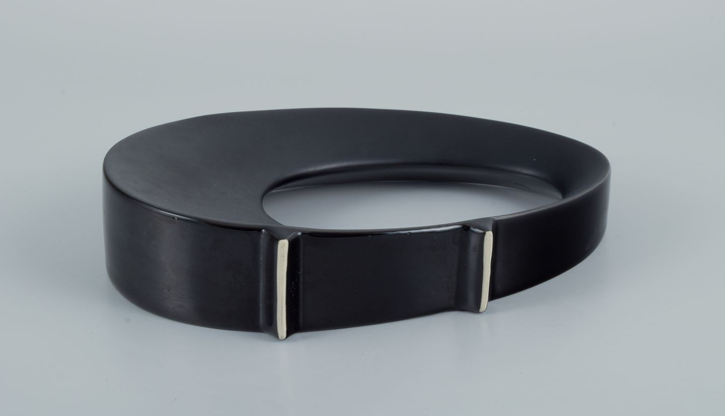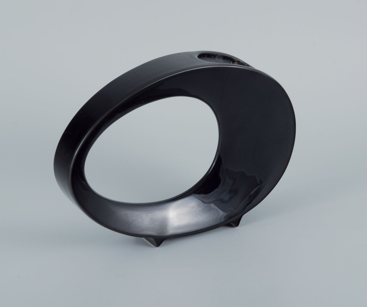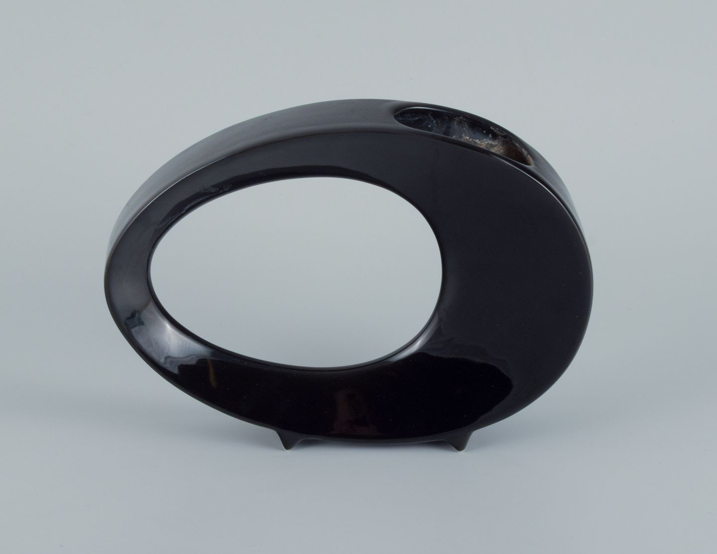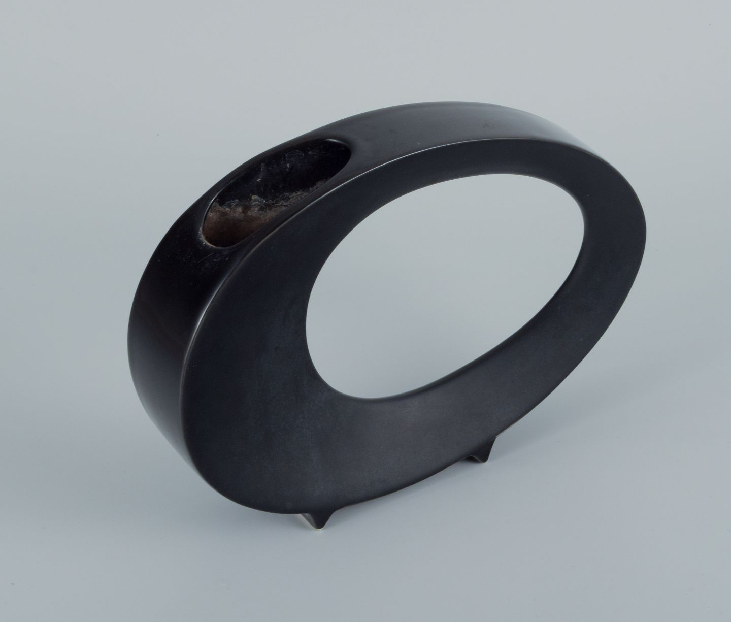 Europæisk studiokeramiker. Vase i sort glasur. Mat på den ene side.