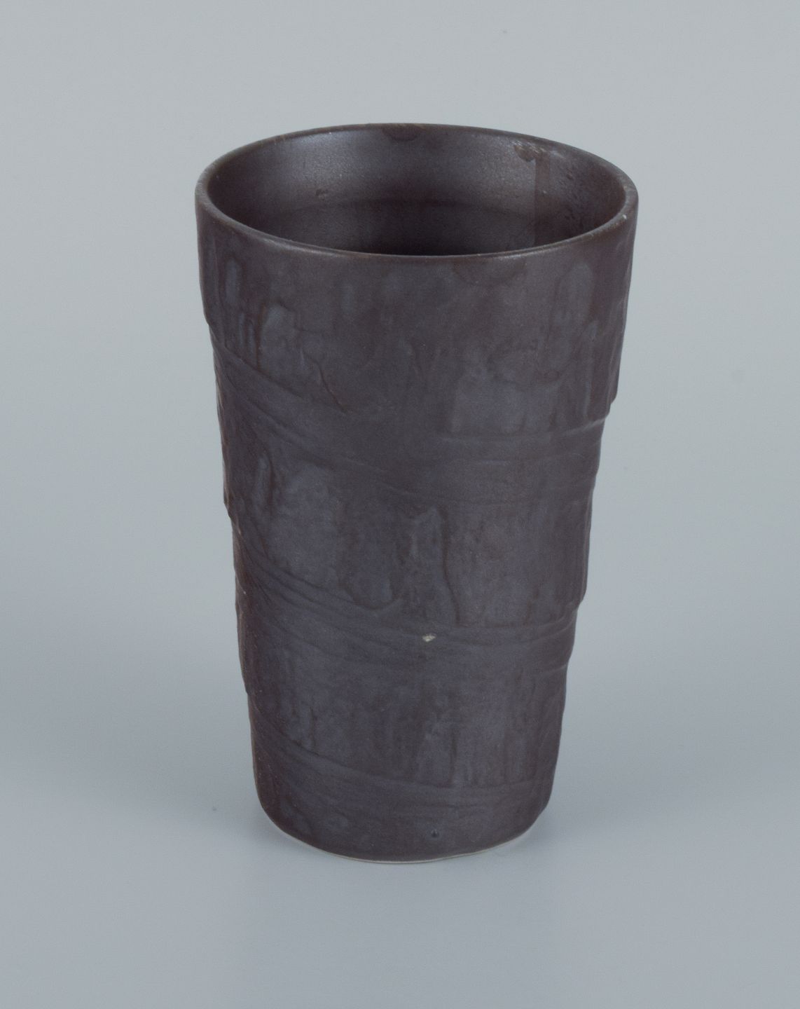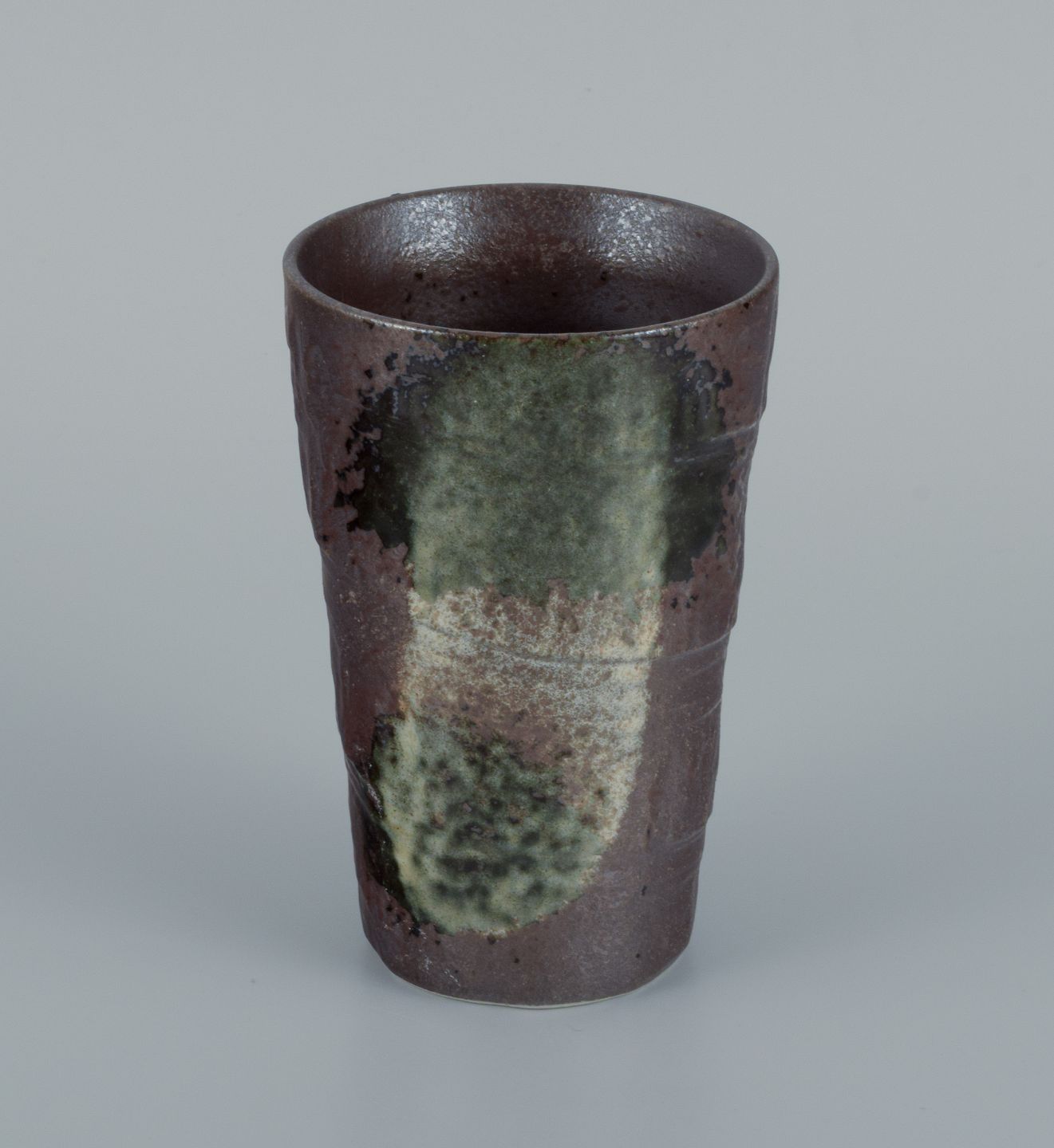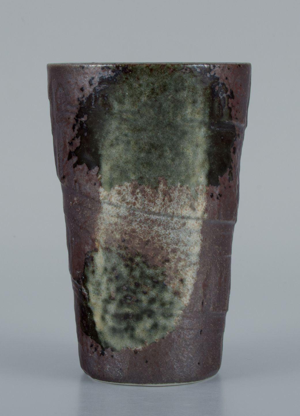 Europæisk studiokeramiker. Unikavase i grøn og hvid glasur på brun baggrund.