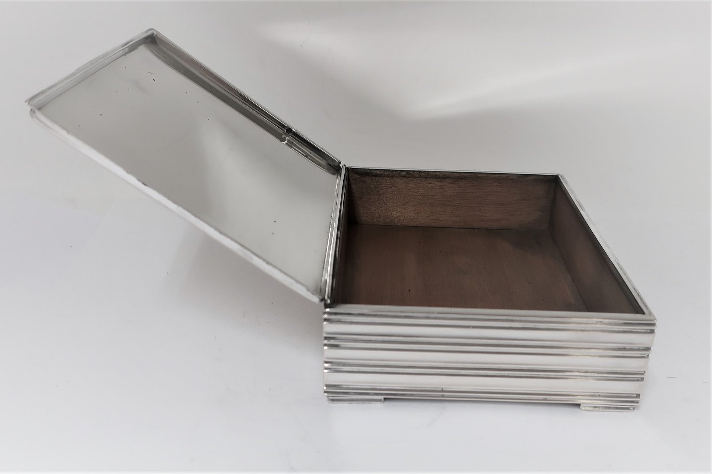 Sølv æske (830). Længde 15,5 cm. Bredde 11,5 cm. Højde 4,5 cm. Produceret 1953.
