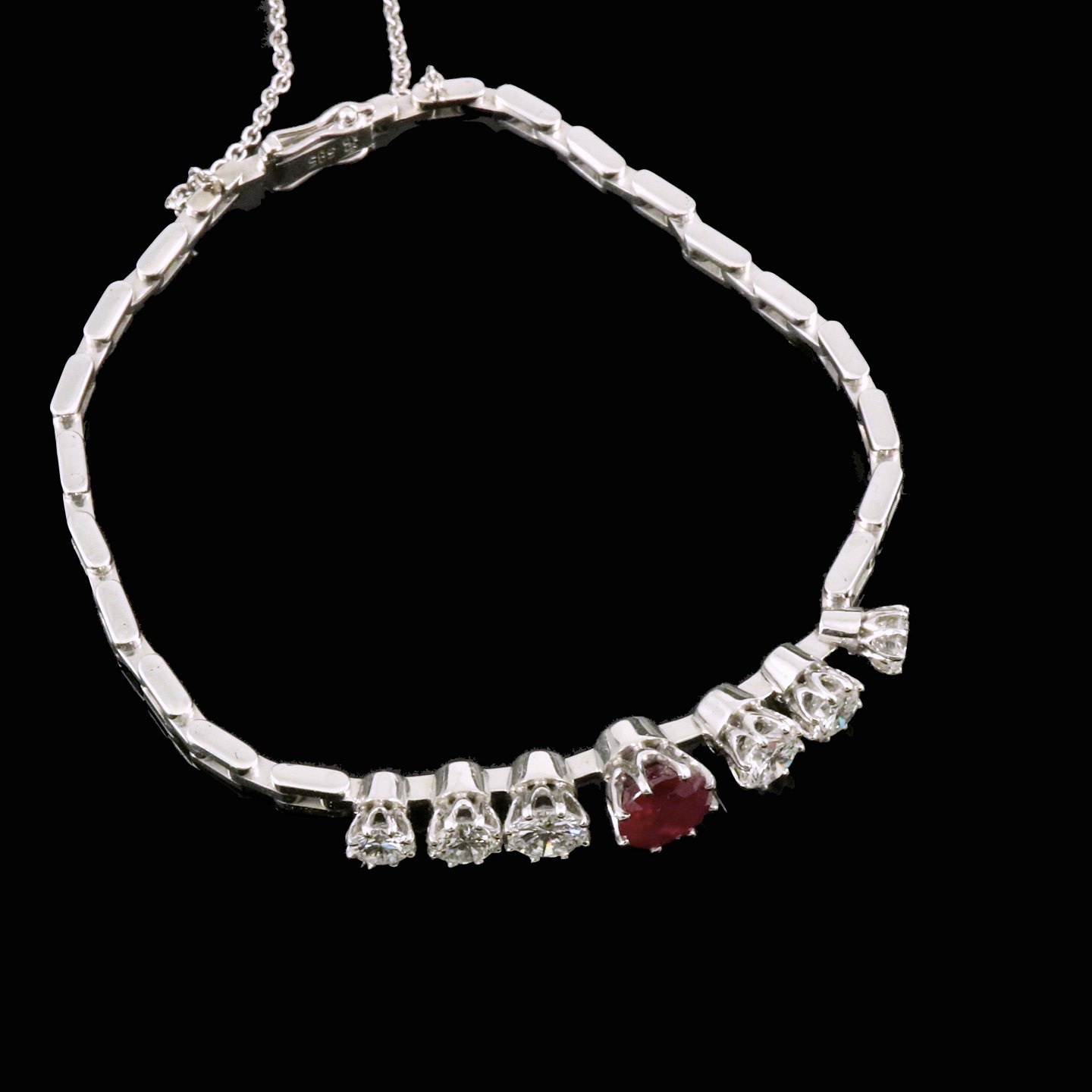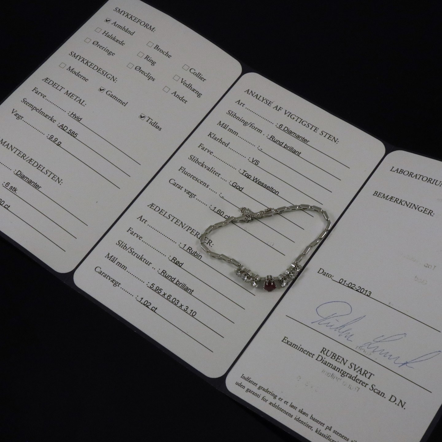 A. Dragsted. Armbånd i 14k hvidguld med Rubin og brillanter.