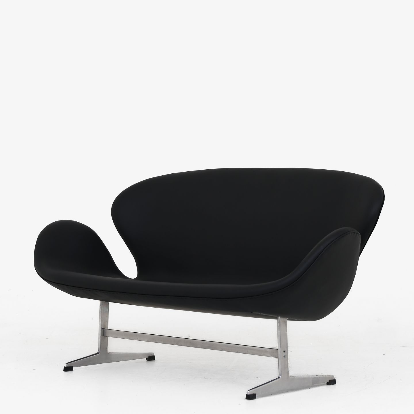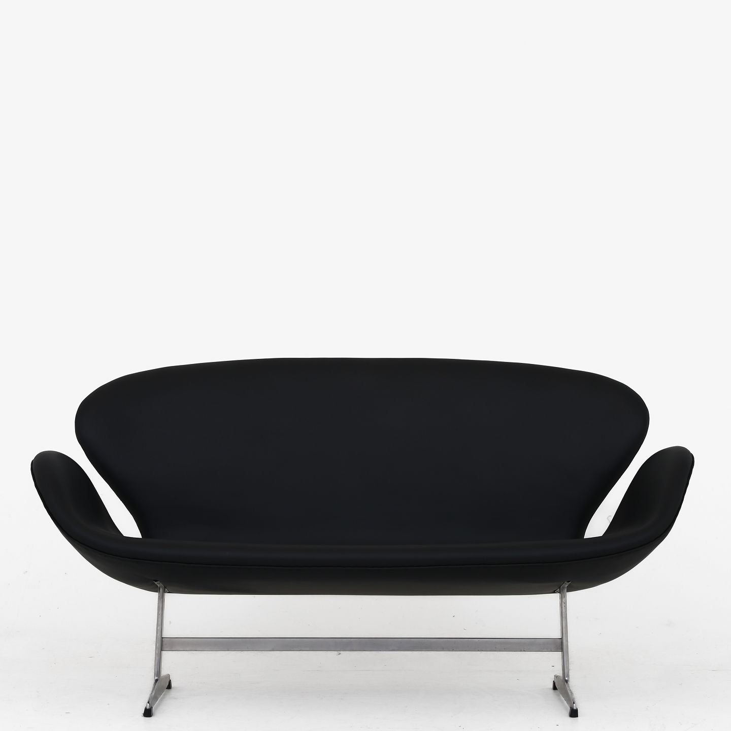 AJ 3321 - Nybetrukket Svanesofa i sort 'Savanne'-semianilin-læder på stel af stål.