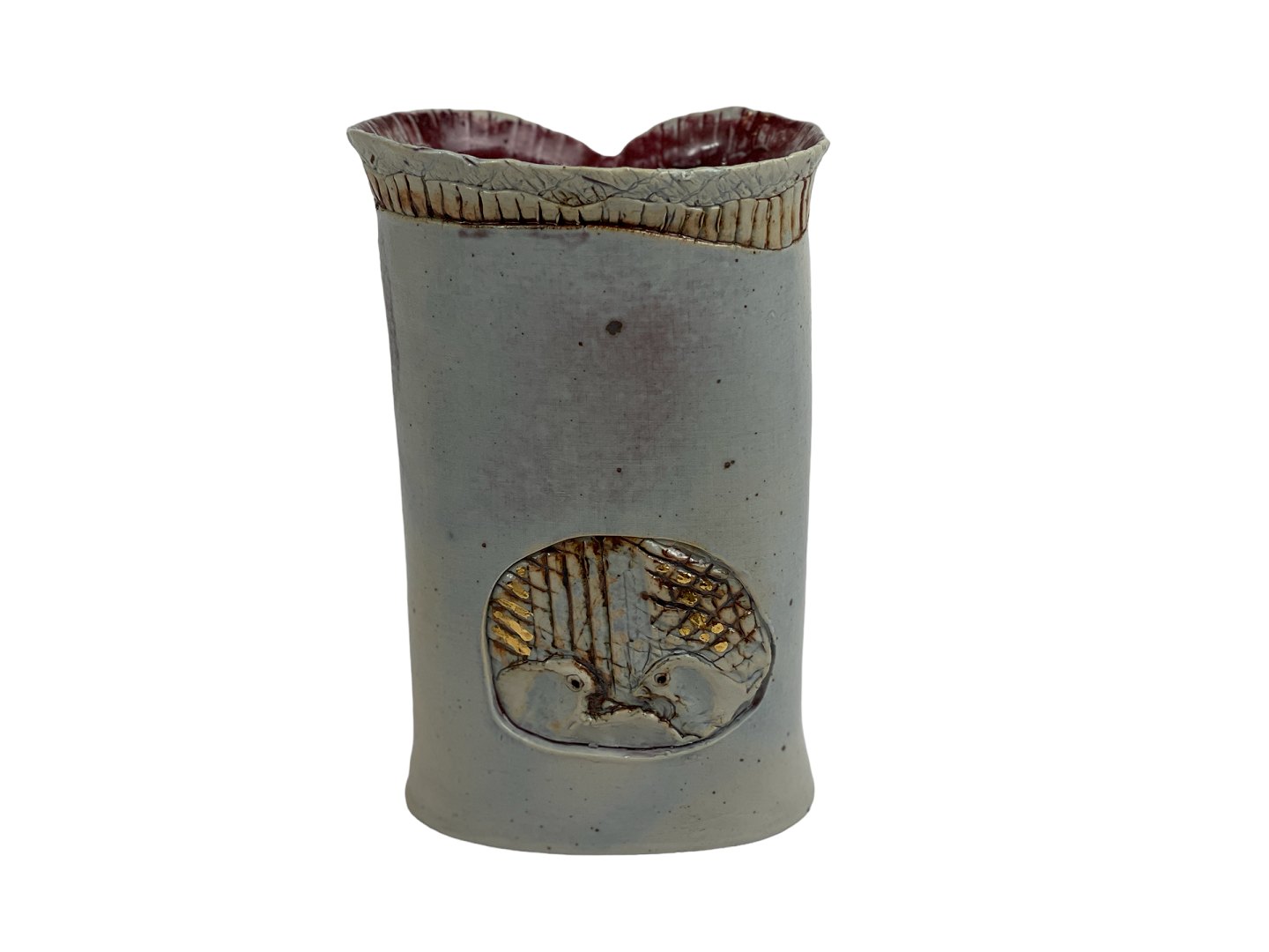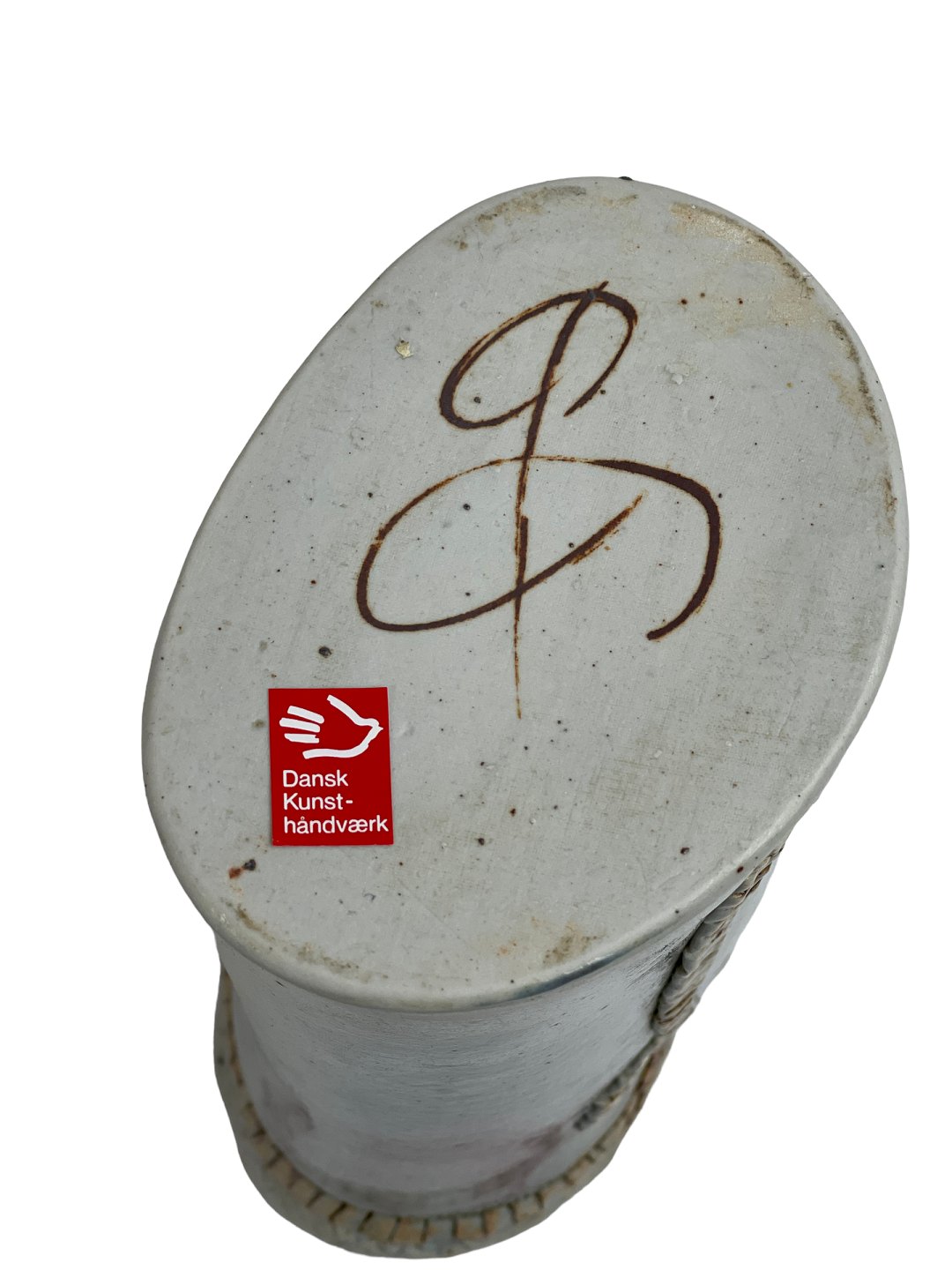 Gerda Østergaard - Smuk, dansk keramik vase med motiv af fugle i rede.