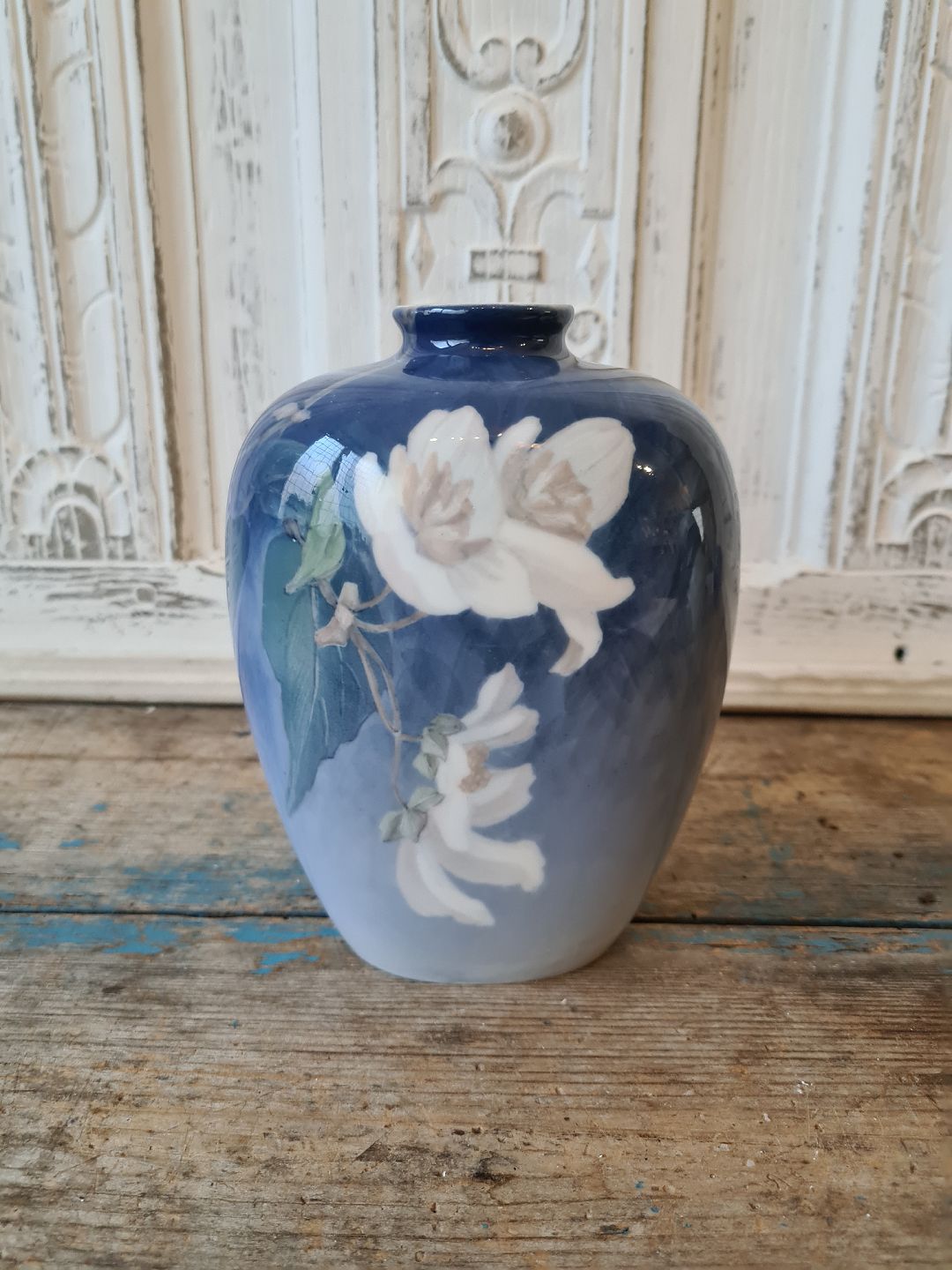 Royal Copenhagen Art Nouveau vase decorated with apple branch in flower