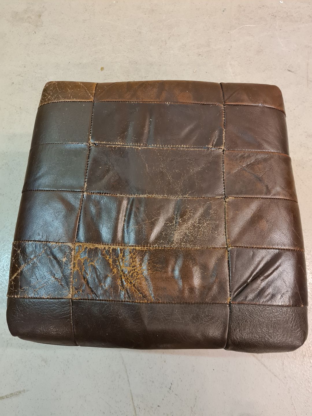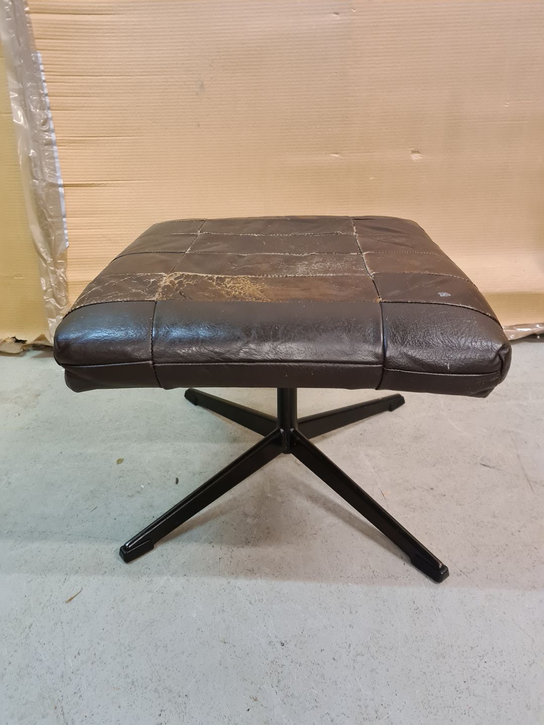 Fodskammel i metal og læder, fra 1980erne.
