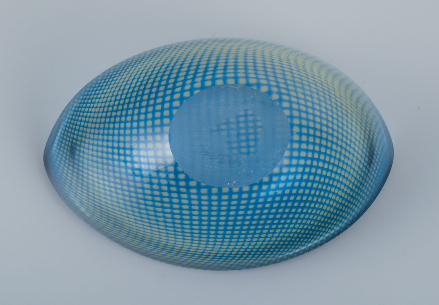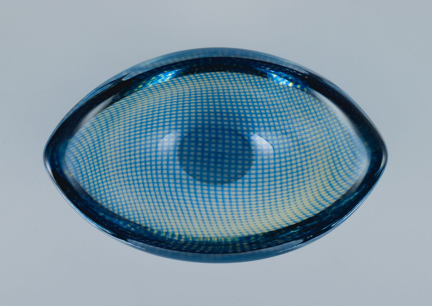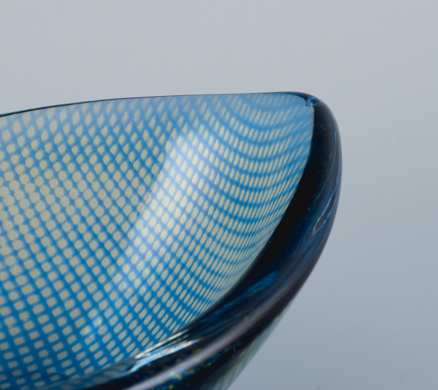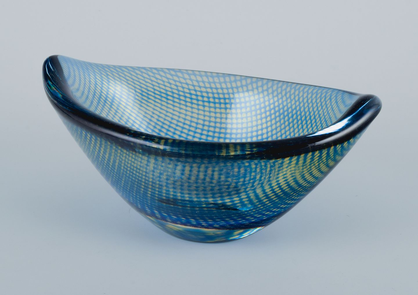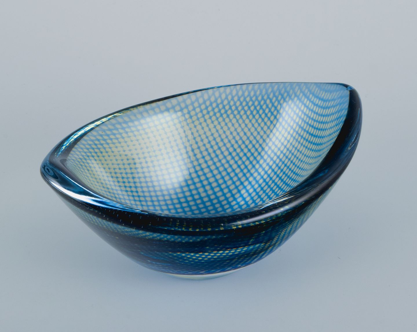 Svend Palmqvist (1906-1984) for Orrefors, ”Kraka” kunstglasskål i ternet blåt mønster.