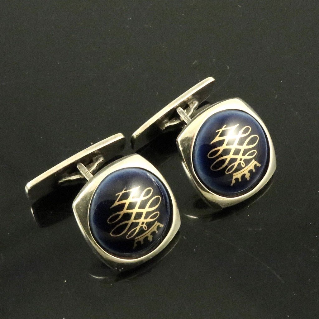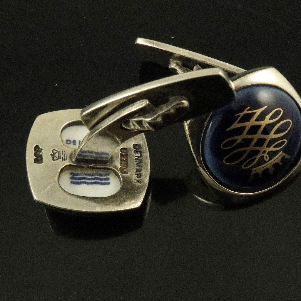 Royal Copenhagen. Manchetknapper i forgyldt sterlingsølv og porcelæn.