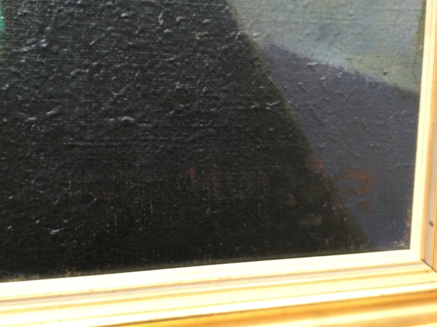 2 små lapper bagpå p.g.a. lille brist i lærred.