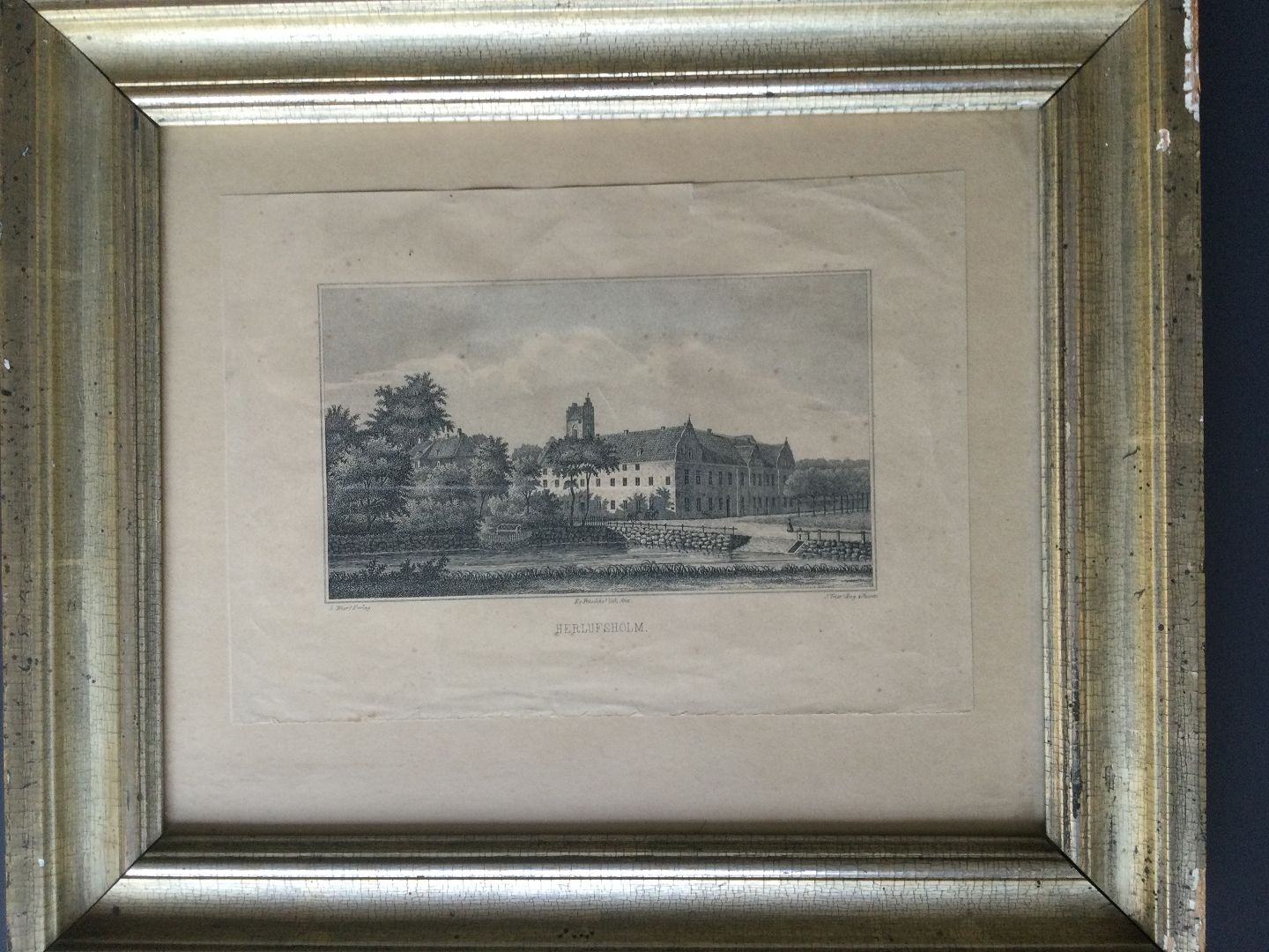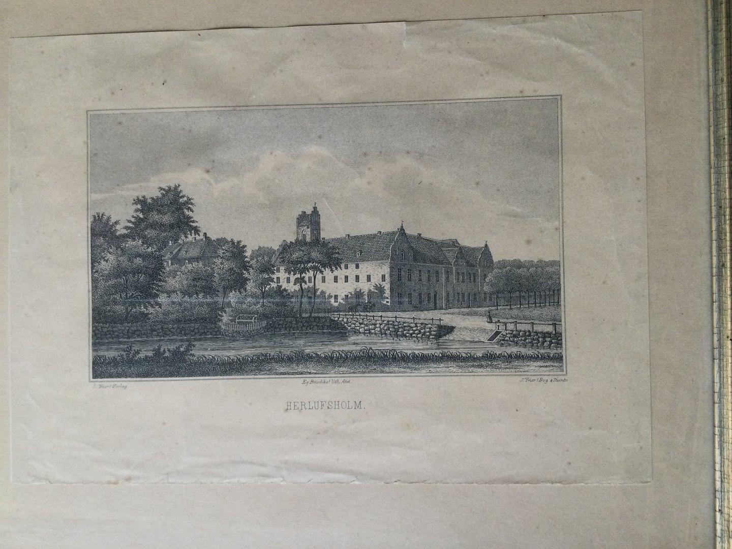Litografi af Eg. Ruschke - Herlufsholm ved Næstved.