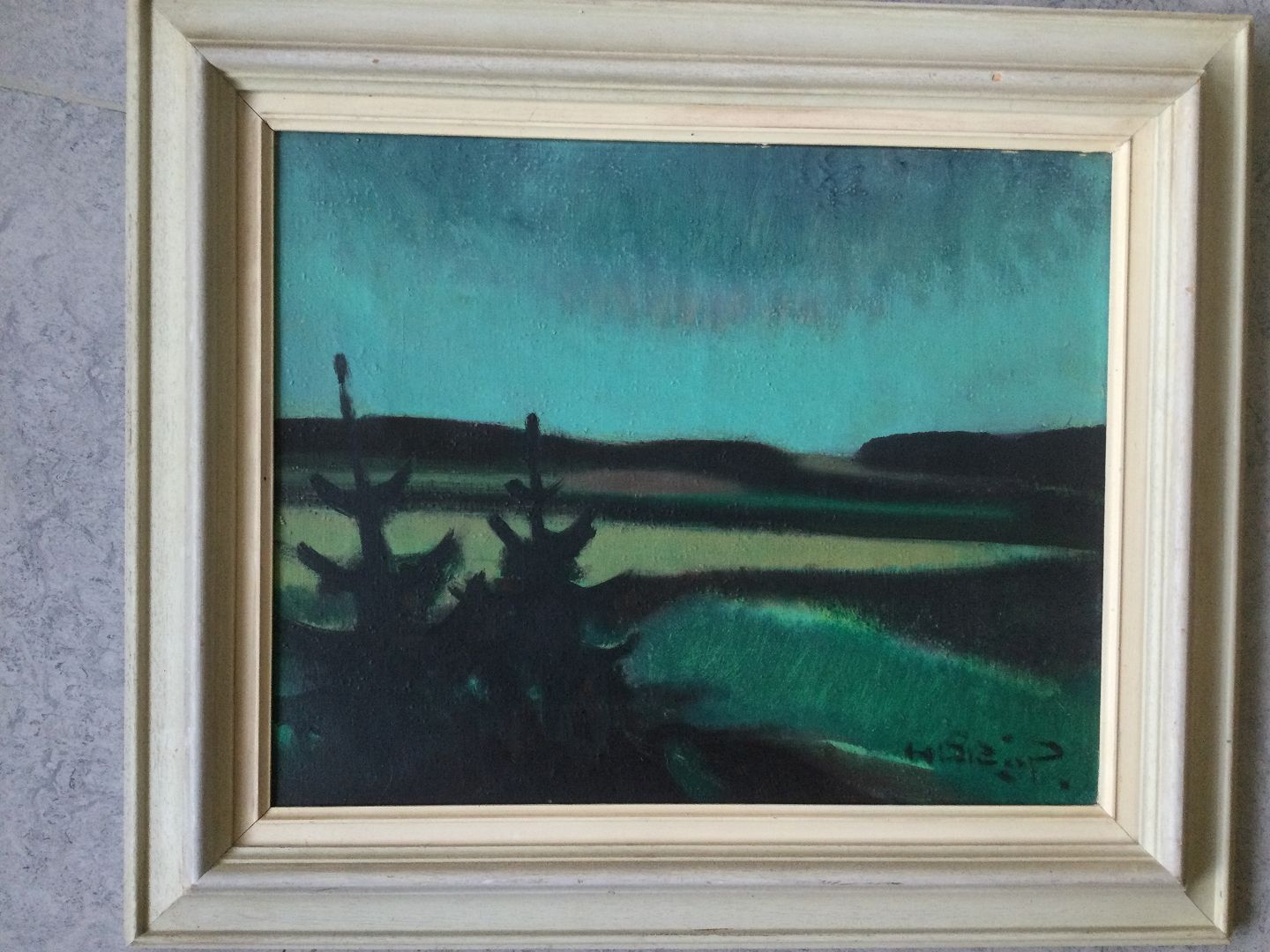 Maleri af Knud Horup - Landskab med graner.
