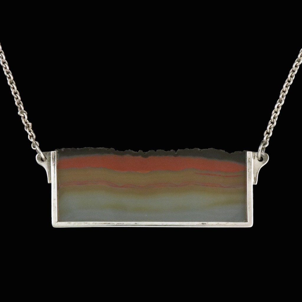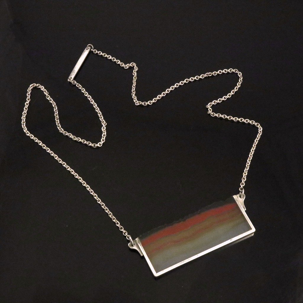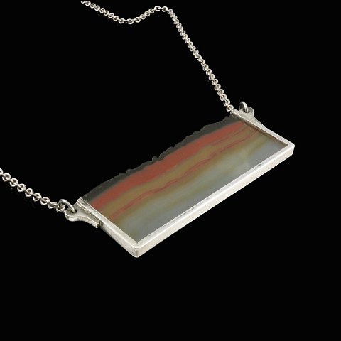 Lise Mayer. Danish Sterling Silver Pendant with Landscape Agate.