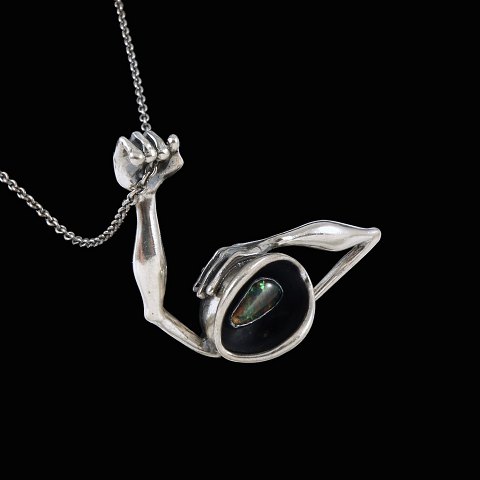 Ole Waldemar Jacobsen. Sterling Silver Pendant with Opal.