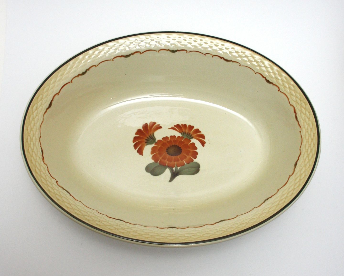 Aluminia, Morgenfrue. Designet af Niels Thorsson. Produceret i perioden 1934-1967. Luftmalet. Oval dyb skål eller fad. Længde 29,5 cm. Bredde 22 cm. Højde 6 cm. Pris: 300 kr. stk. Lager: 2
