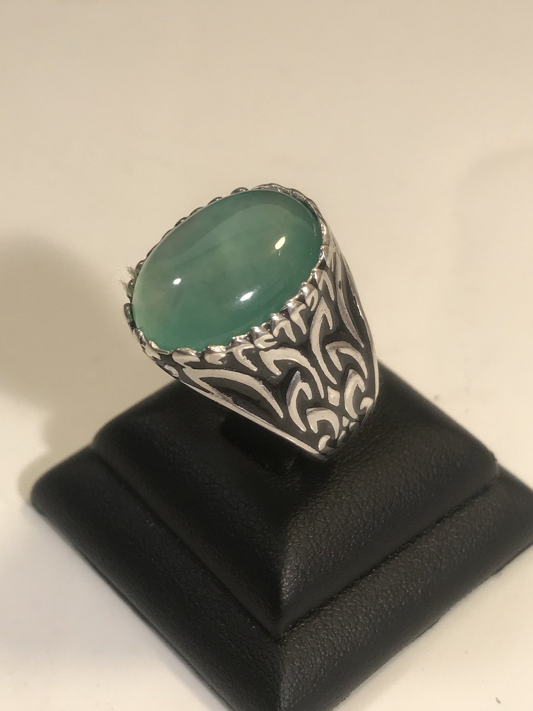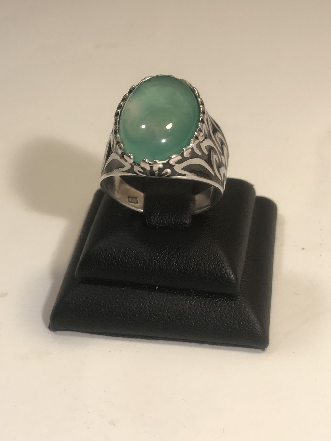 Herre sølv ringe i 925 s med store grøn aget sten .