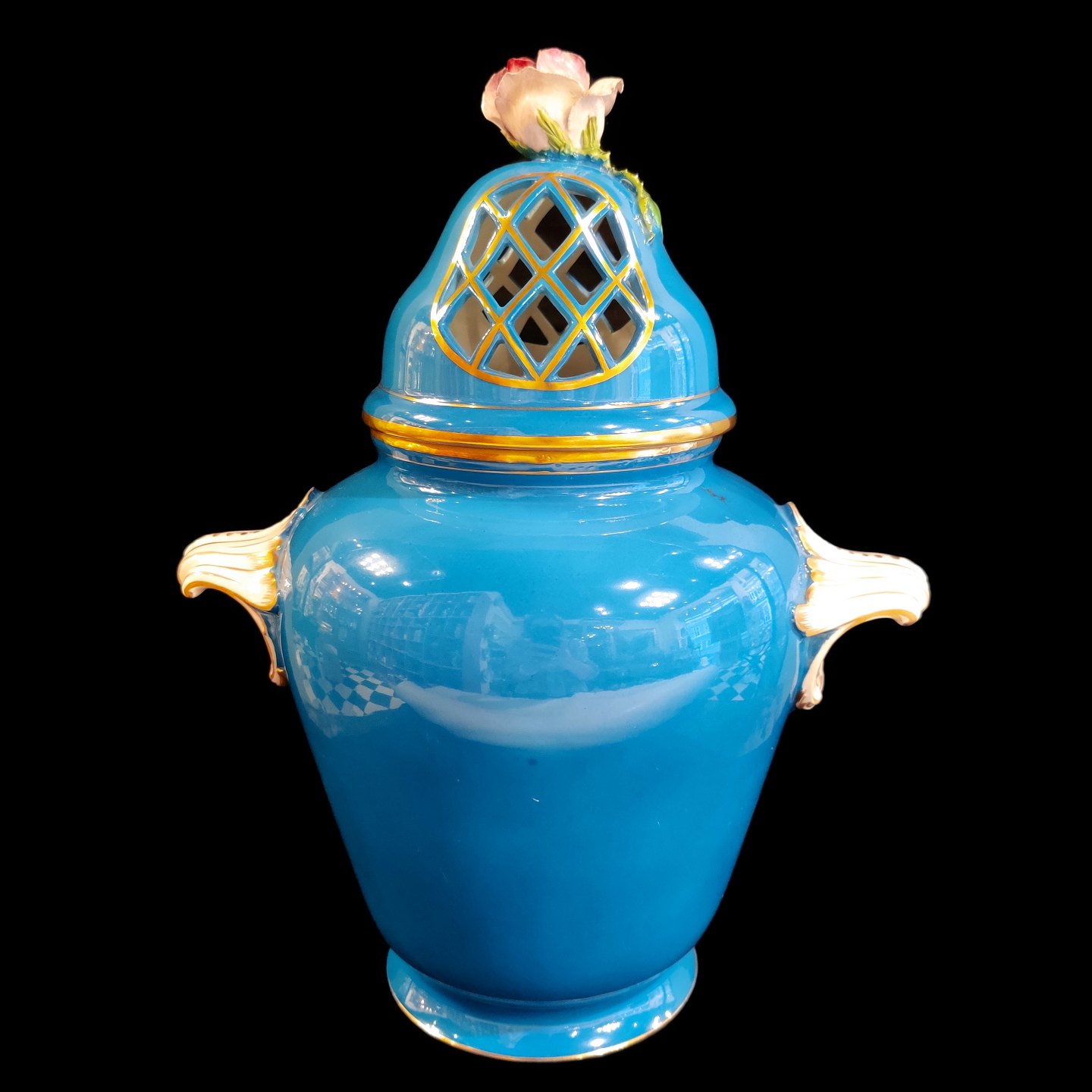 Dresden porcelæn; Stor lågvase med gemmenbrudt top.