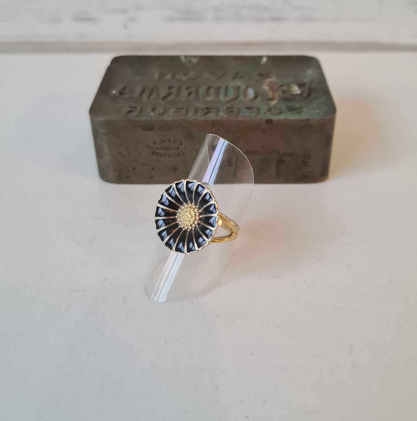 Georg Jensen Marguerit ring i forgyldt sterlingsølv og sort emalje