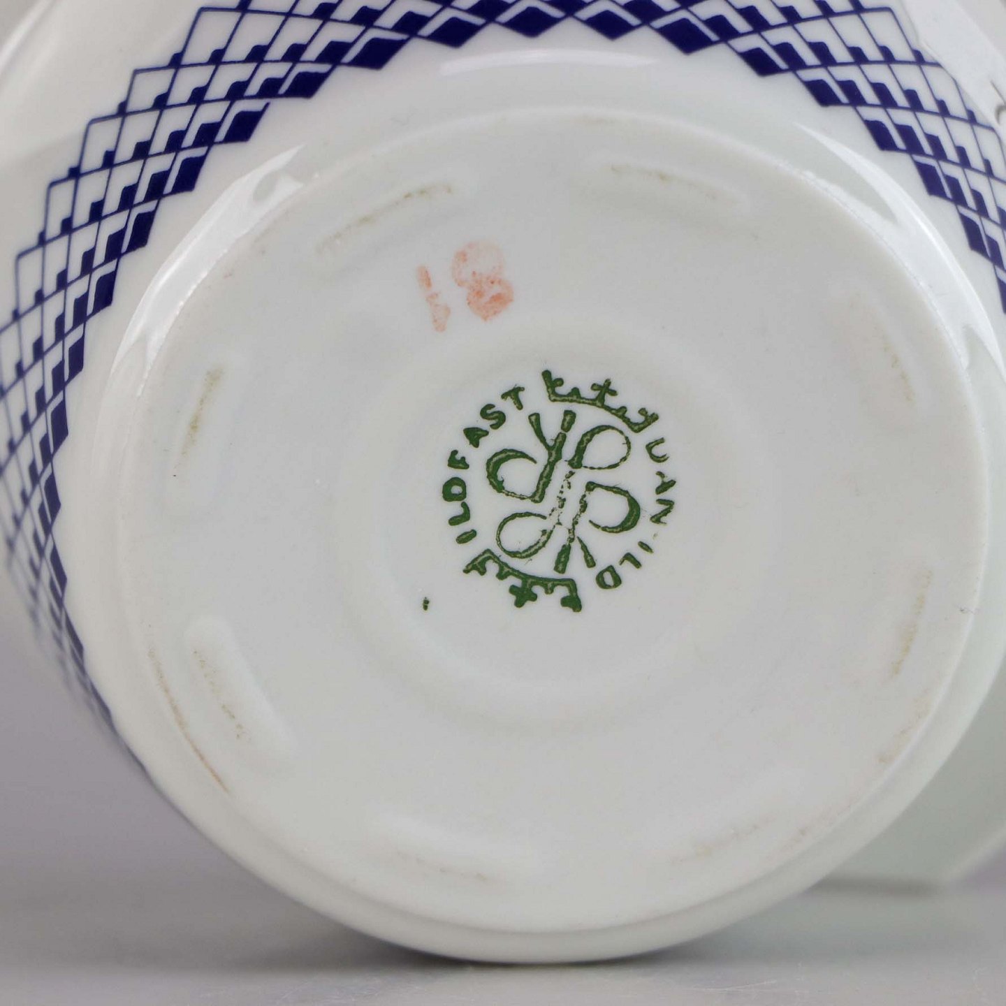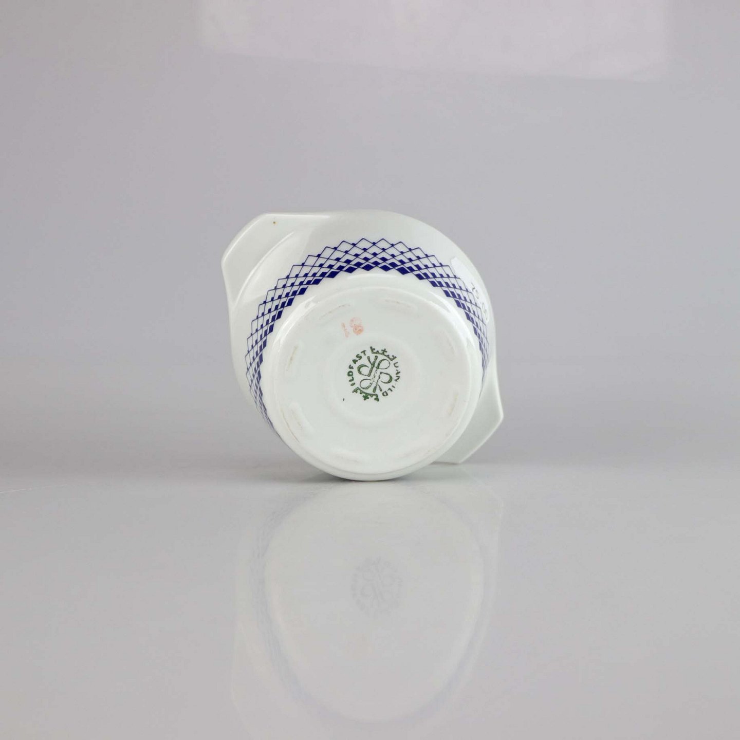 Ildfast glas hvidt porcelæn med dekoration af mørkeblå romber