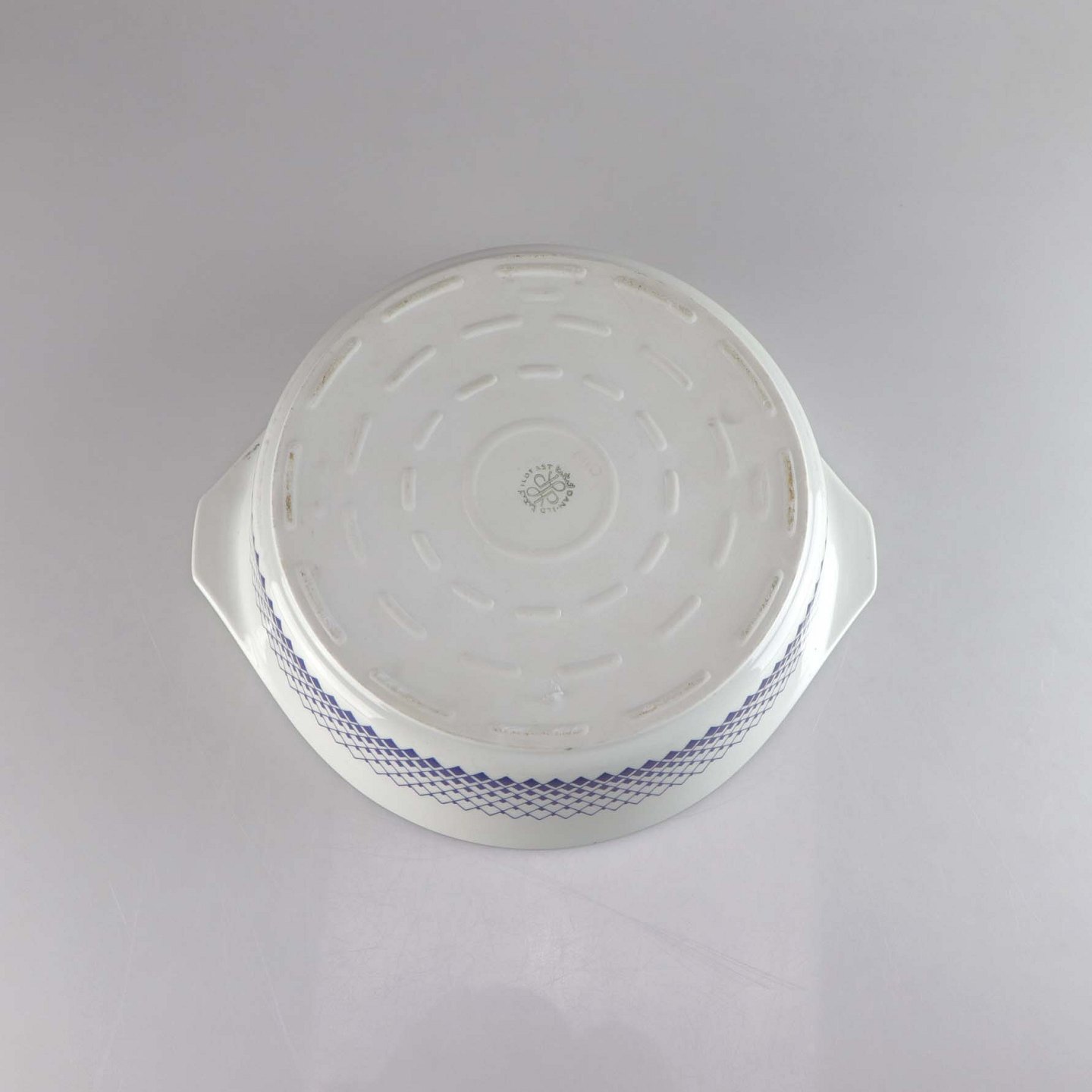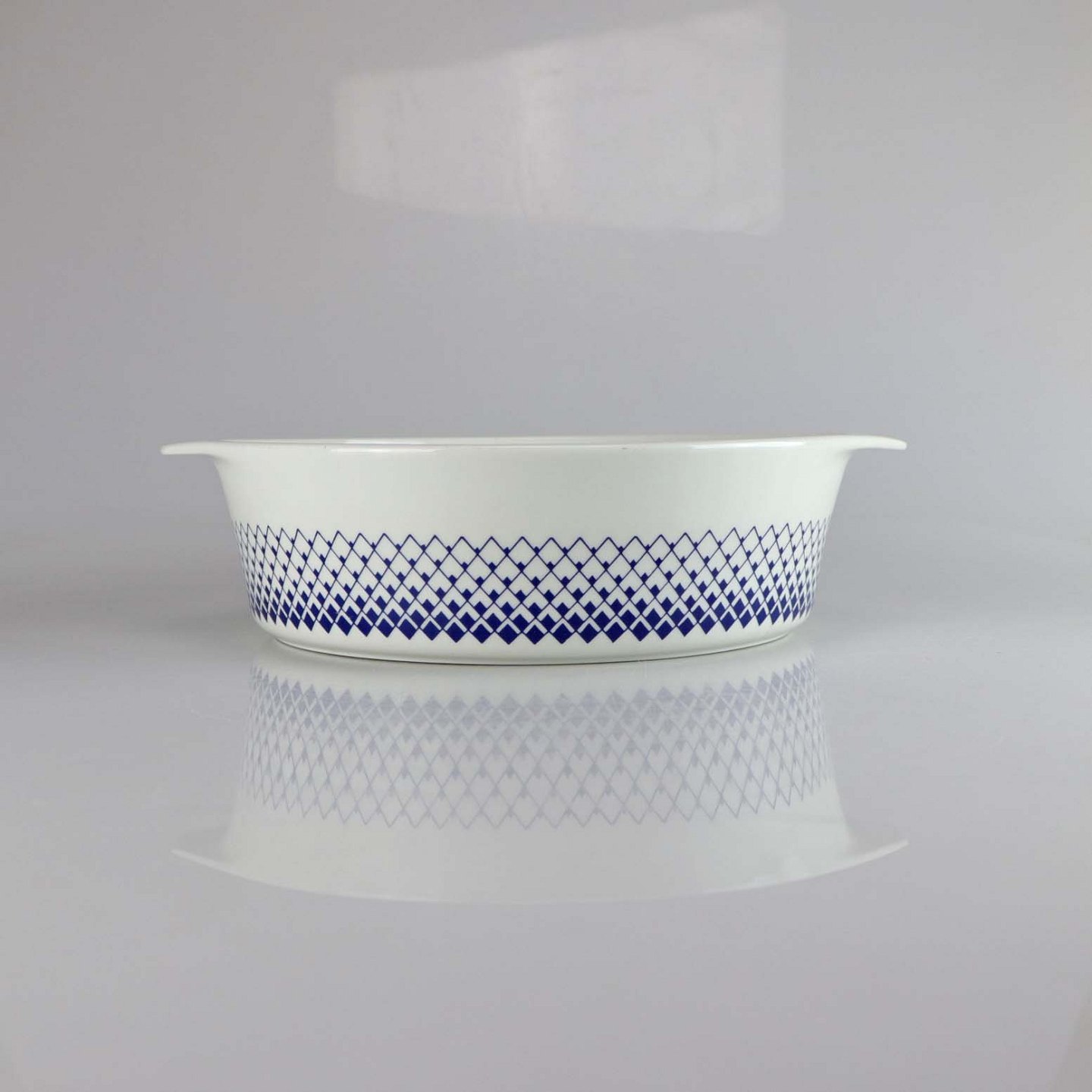 Ildfast glas hvidt porcelæn med dekoration af mørkeblå romber