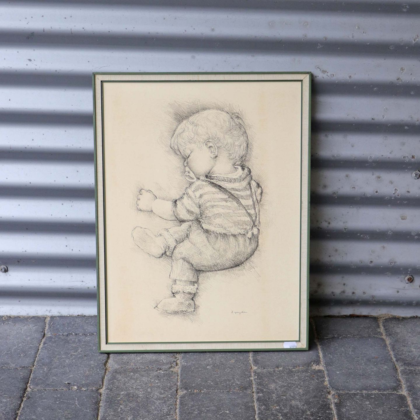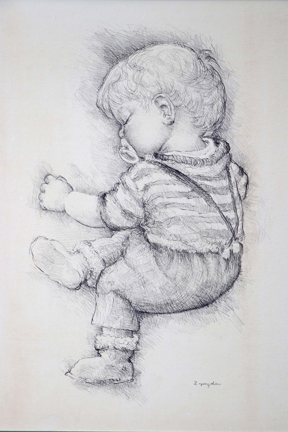 Reproduktion fra 1969 - motiv Morten sovende lille barn