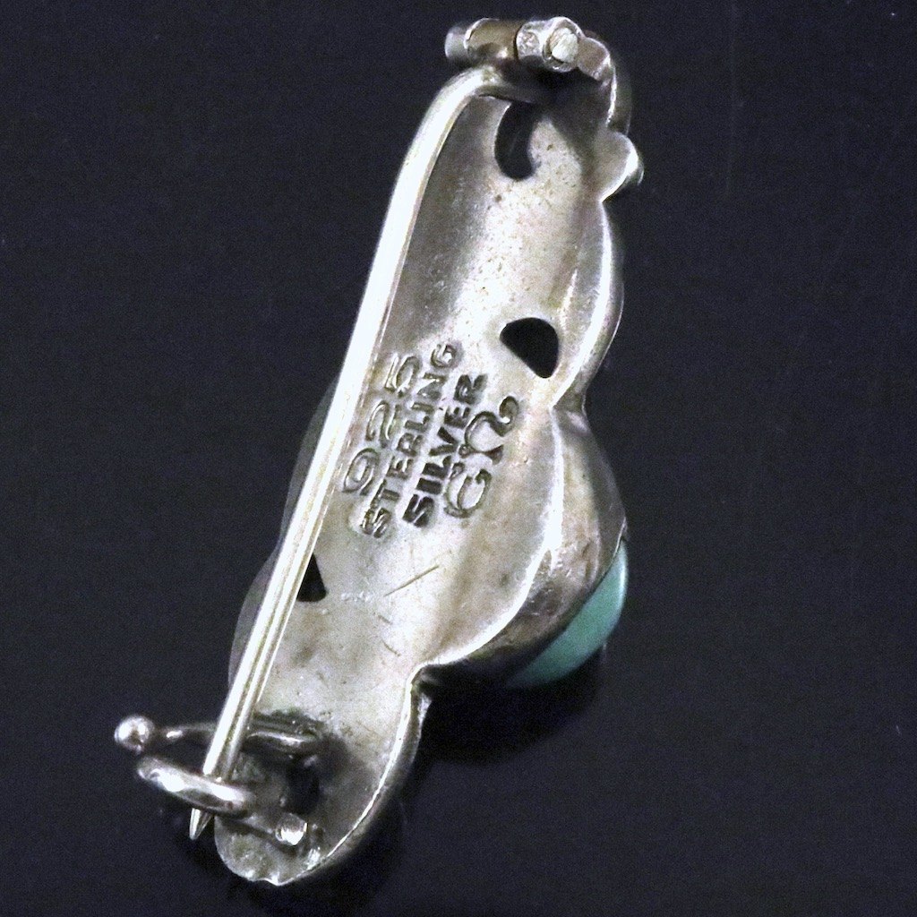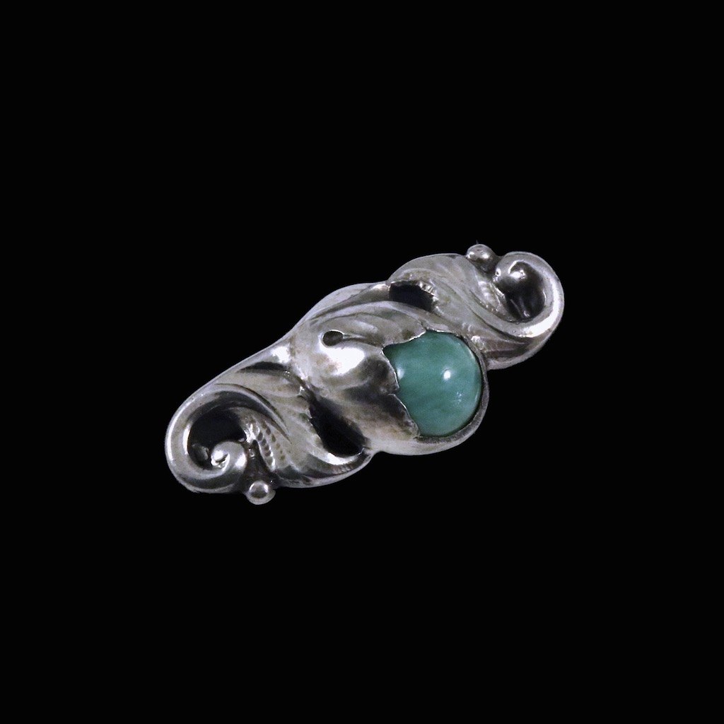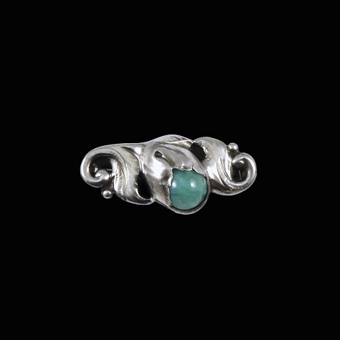 Evald Nielsen 1879 - 1958. Skønvirke Broche i sterlingsølv med amazonit.
