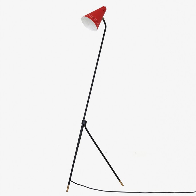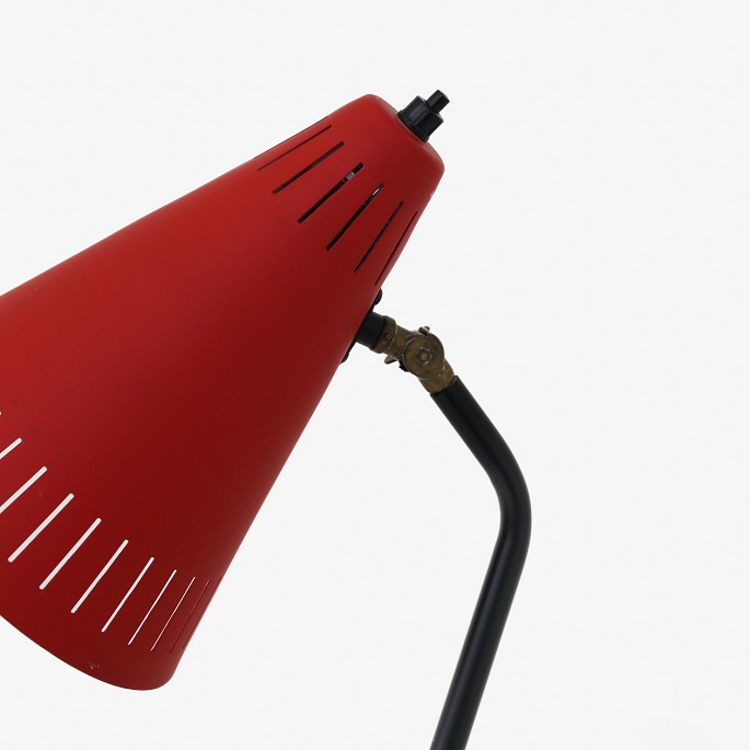 'Grasshopper' standerlampe i sort og rødt metal med messingdetaljer.